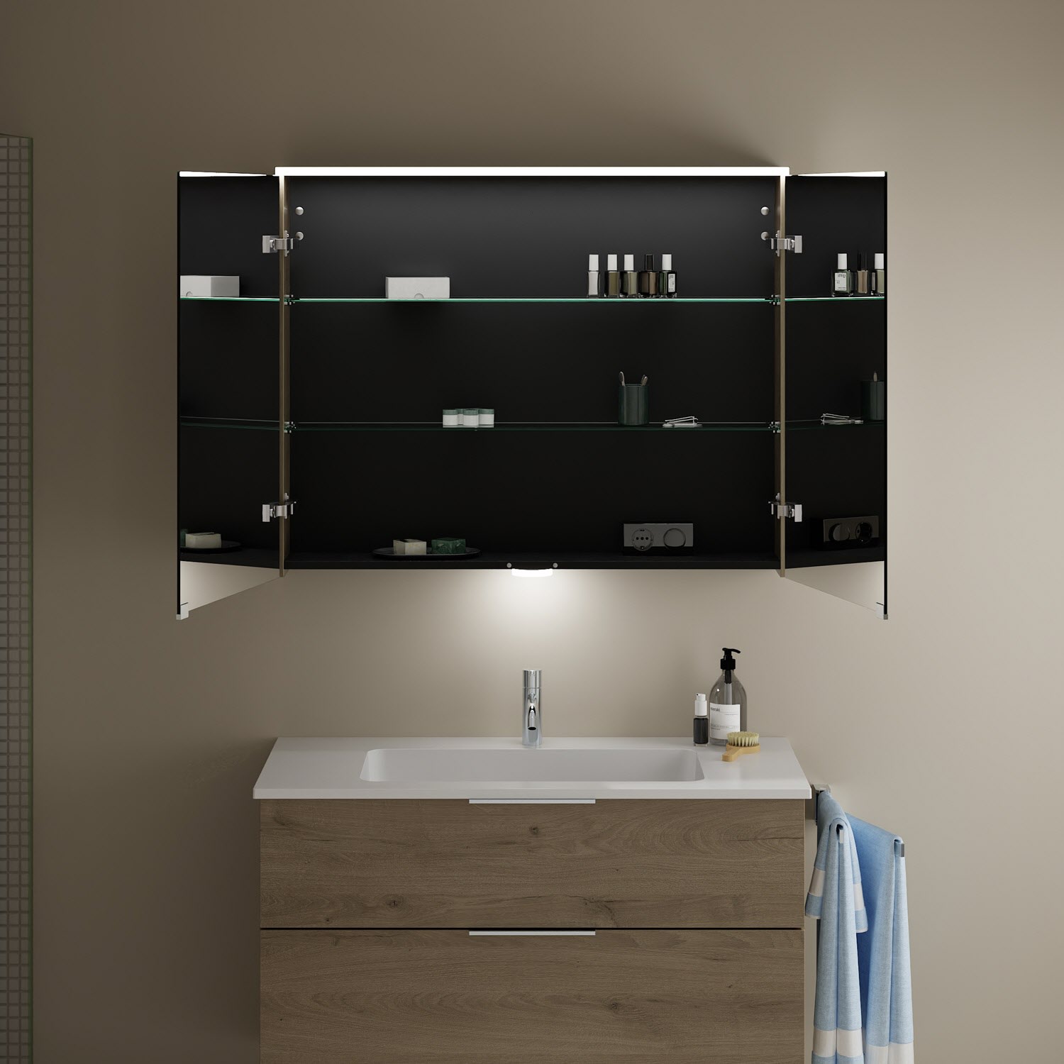 burgbad Eqio Spiegelschrank mit LED-Aufsatzleuchte und LED-Waschtischbeleuchtung 100 cm