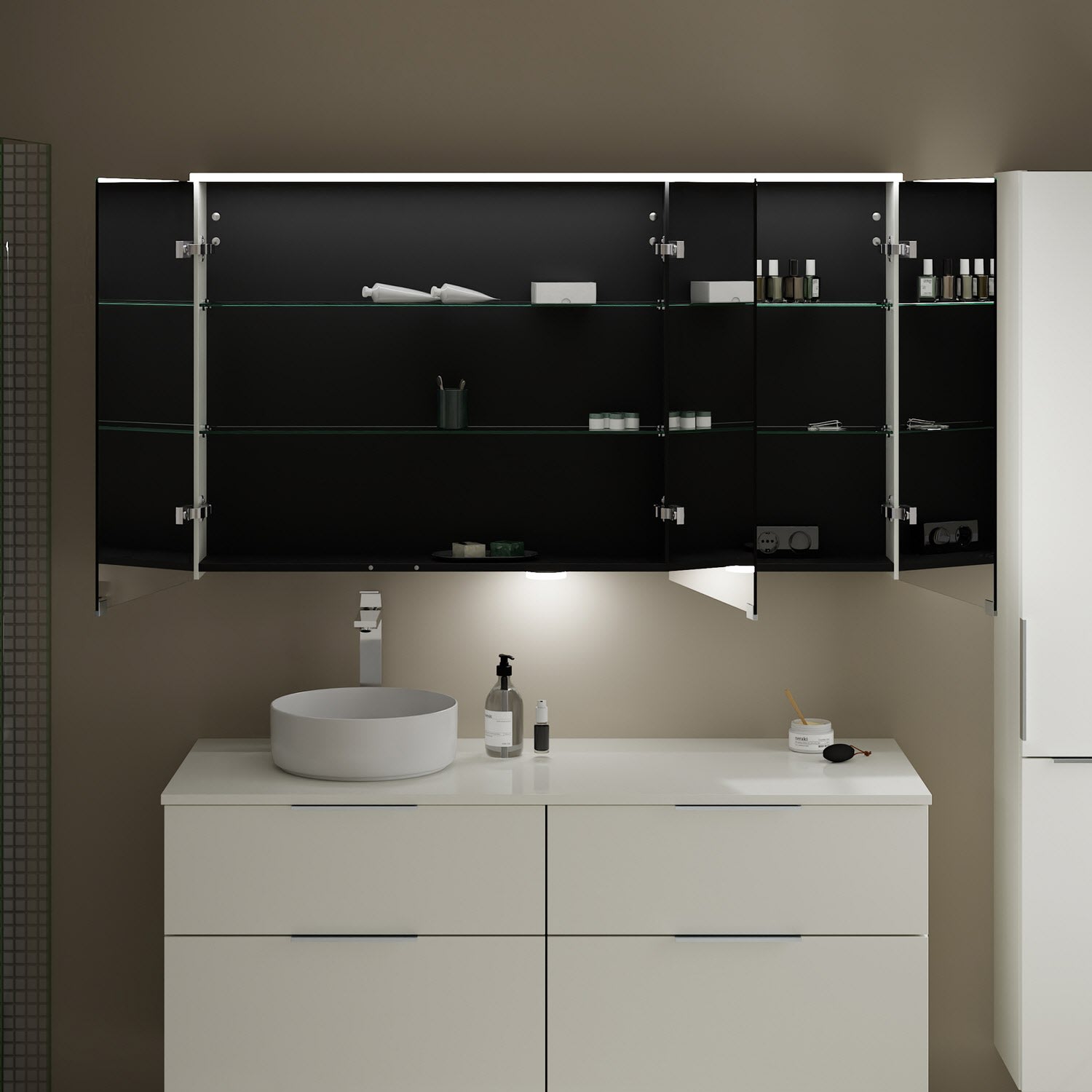 mit LED-Aufsatzleuchte und Waschtischbeleuchtung
