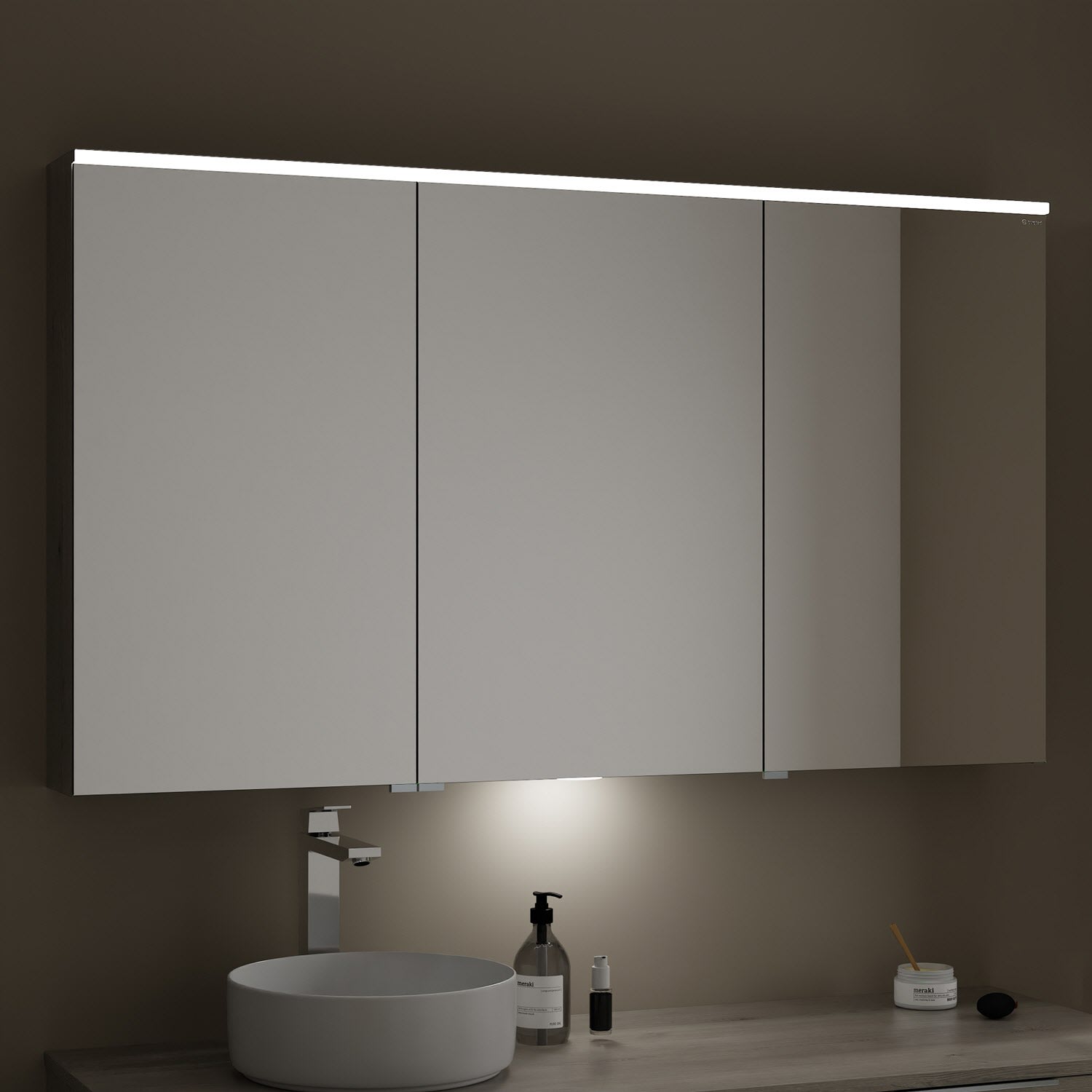 burgbad Eqio Spiegelschrank mit LED-Aufsatzleuchte und LED-Waschtischbeleuchtung 140 cm Links