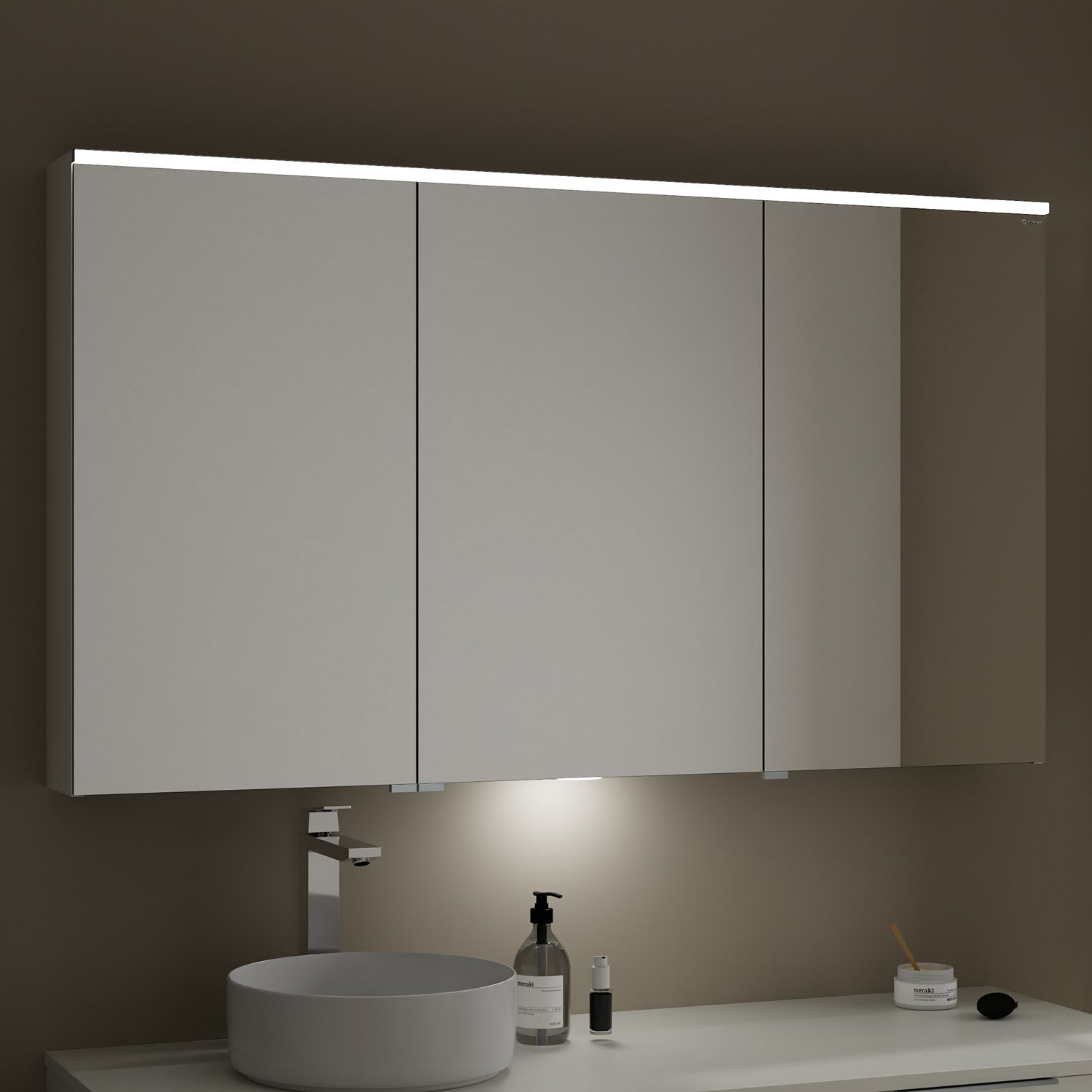 burgbad Eqio Spiegelschrank mit LED-Aufsatzleuchte und LED-Waschtischbeleuchtung 140 cm Links