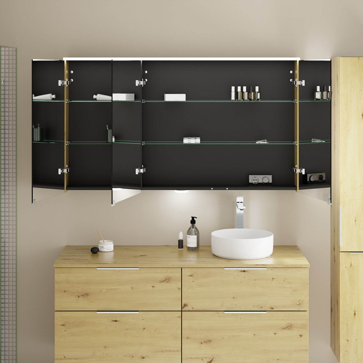 mit LED-Aufsatzleuchte und Waschtischbeleuchtung