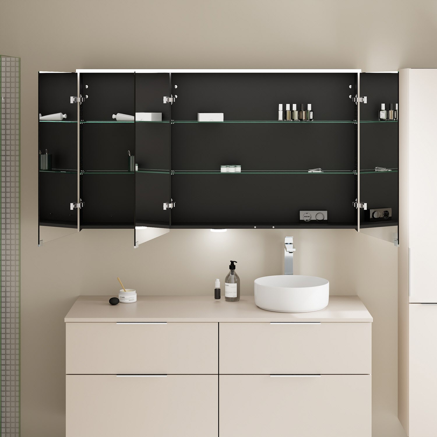 mit LED-Aufsatzleuchte und Waschtischbeleuchtung