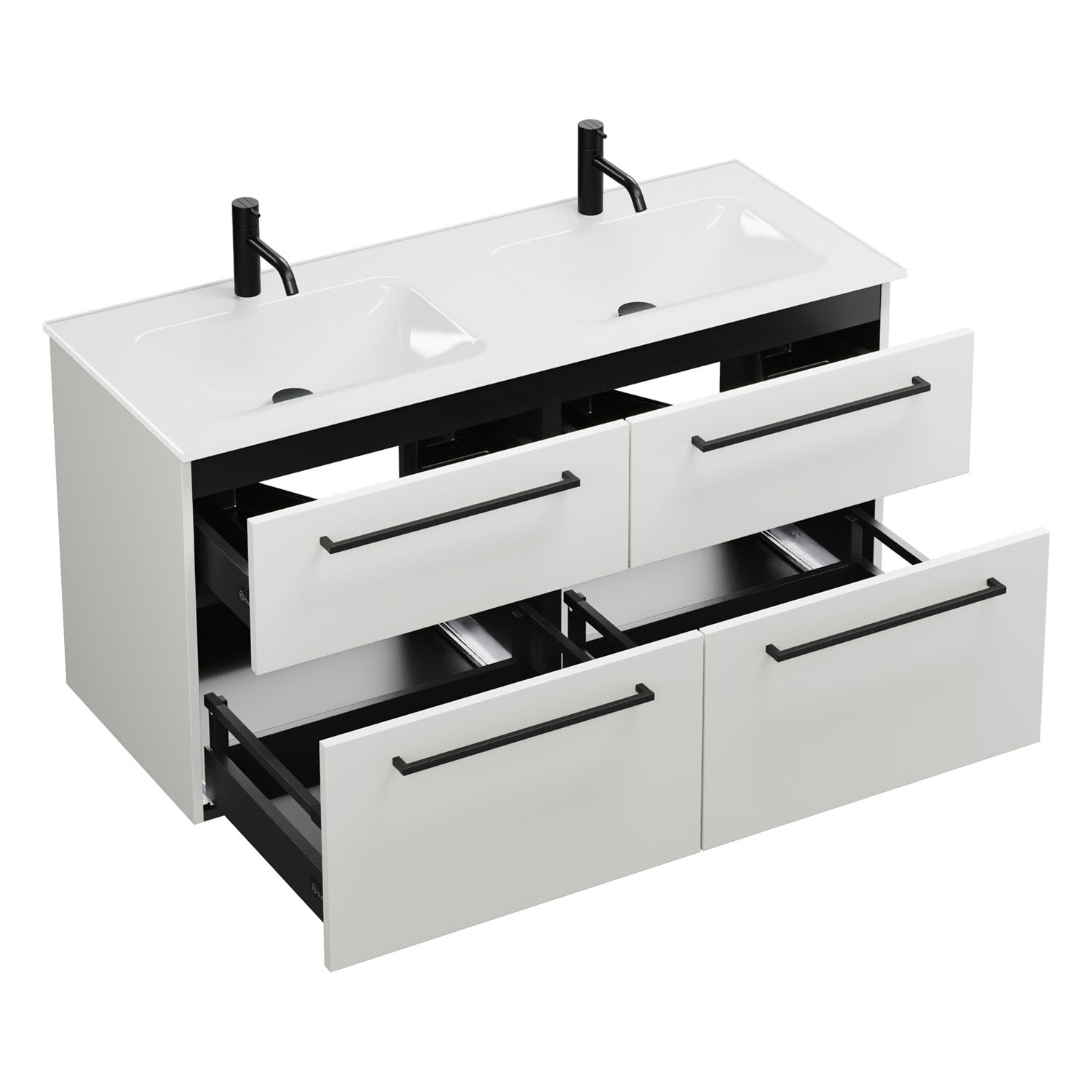 burgbad Eqio Waschtischkombination mit Glas- Doppelwaschtisch 122 cm, mit Stangengriff G0234