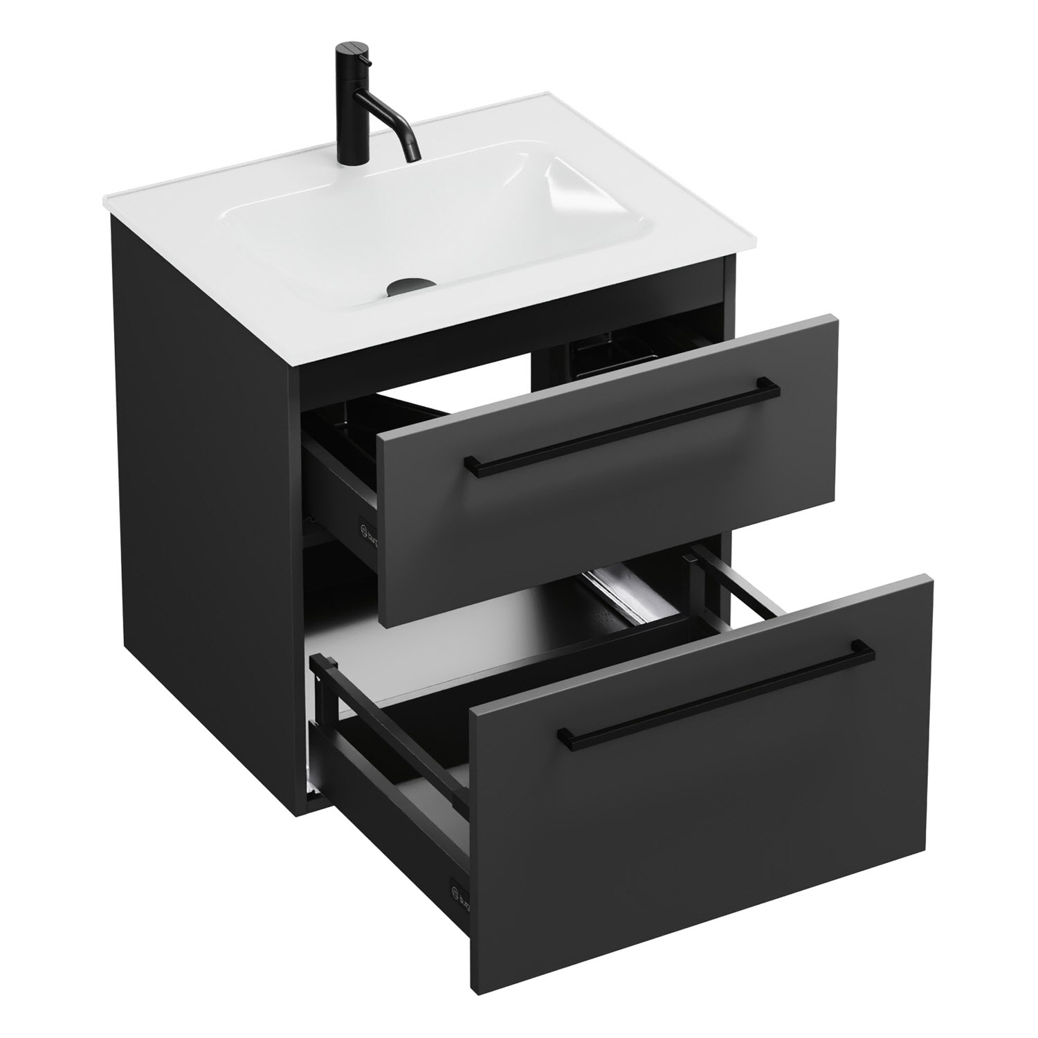 burgbad Eqio Waschtischkombination mit Glaswaschtisch 62 cm, mit Stangengriff G0234