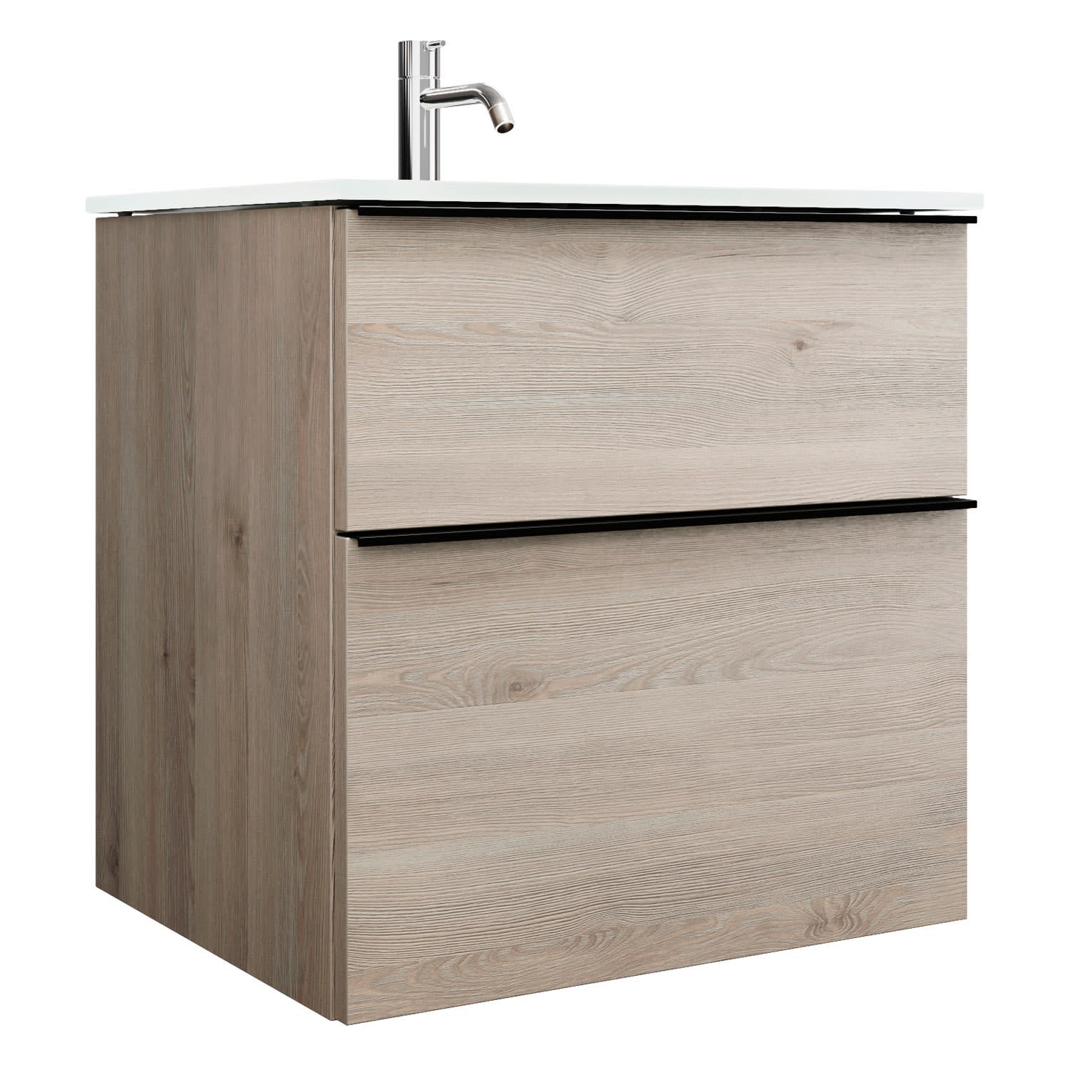 - 1 Schublade oben, 35 cm tief, mit Siphonausschnitt und Inneneinteilung