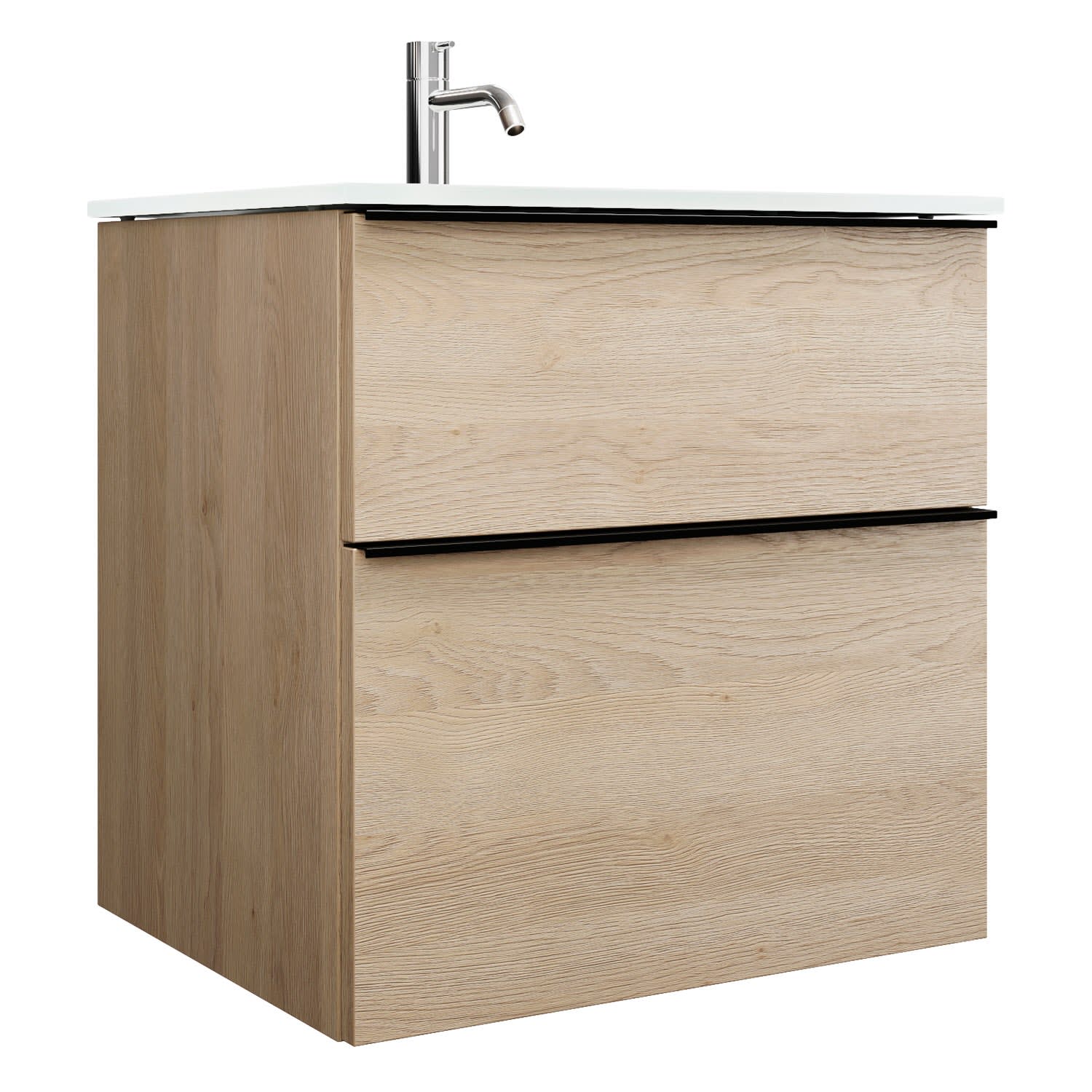 - 1 Schublade oben, 35 cm tief, mit Siphonausschnitt und Inneneinteilung