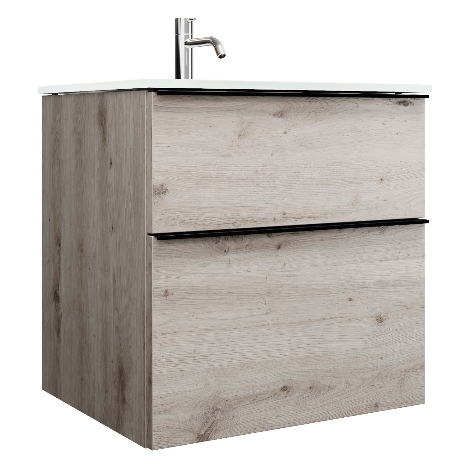 - 1 Schublade oben, 35 cm tief, mit Siphonausschnitt und Inneneinteilung