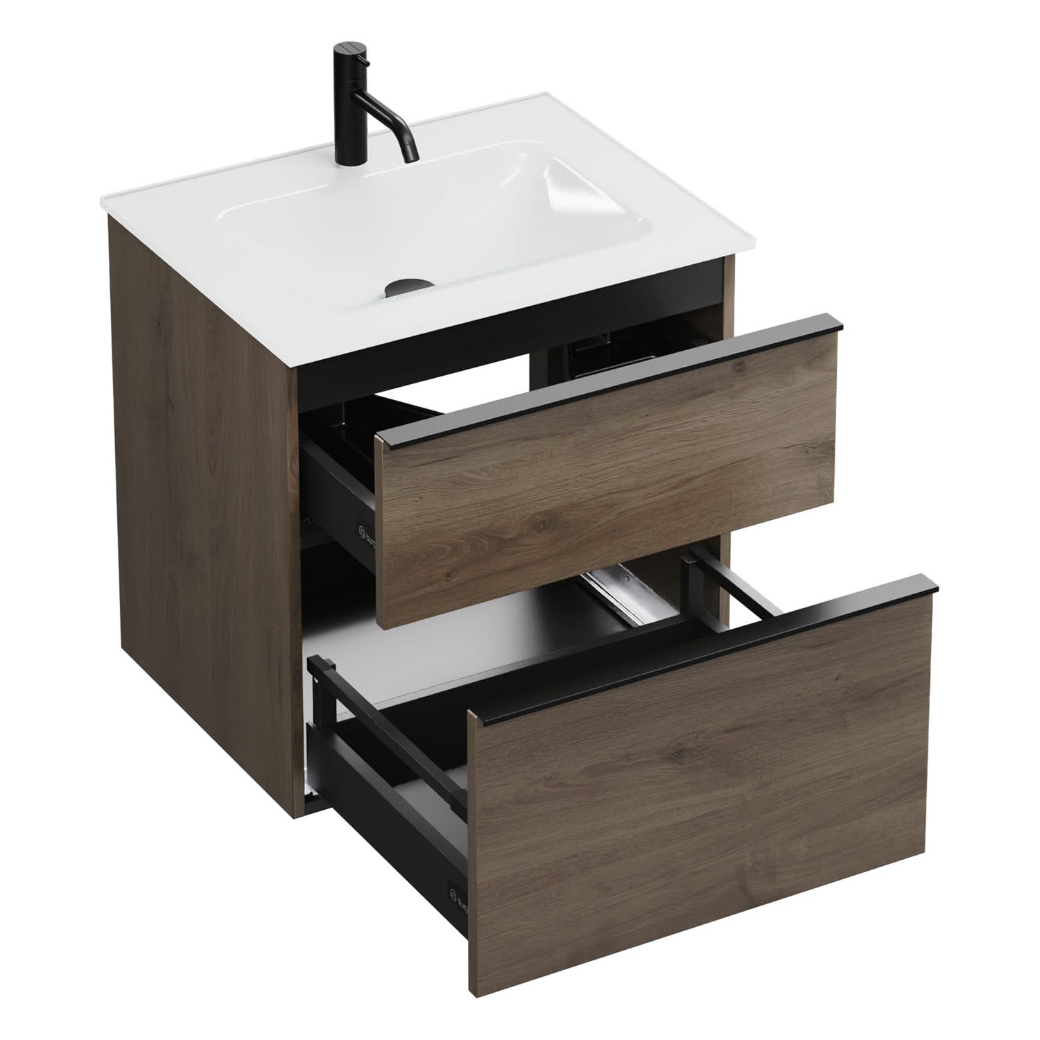 - 1 Schublade oben, 35 cm tief, mit Siphonausschnitt und Inneneinteilung