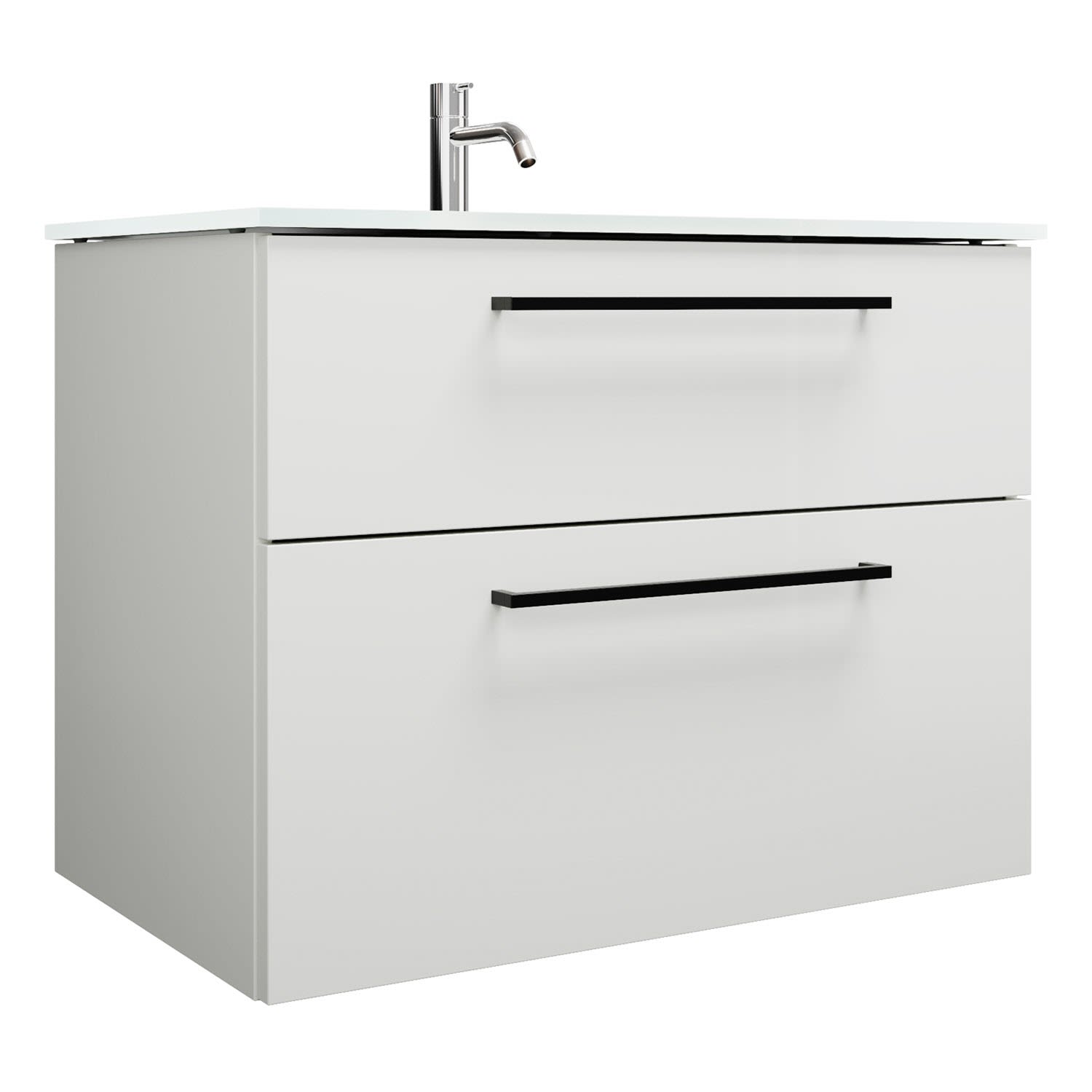burgbad Eqio Waschtischkombination mit Glaswaschtisch 82 cm, mit Stangengriff G0234