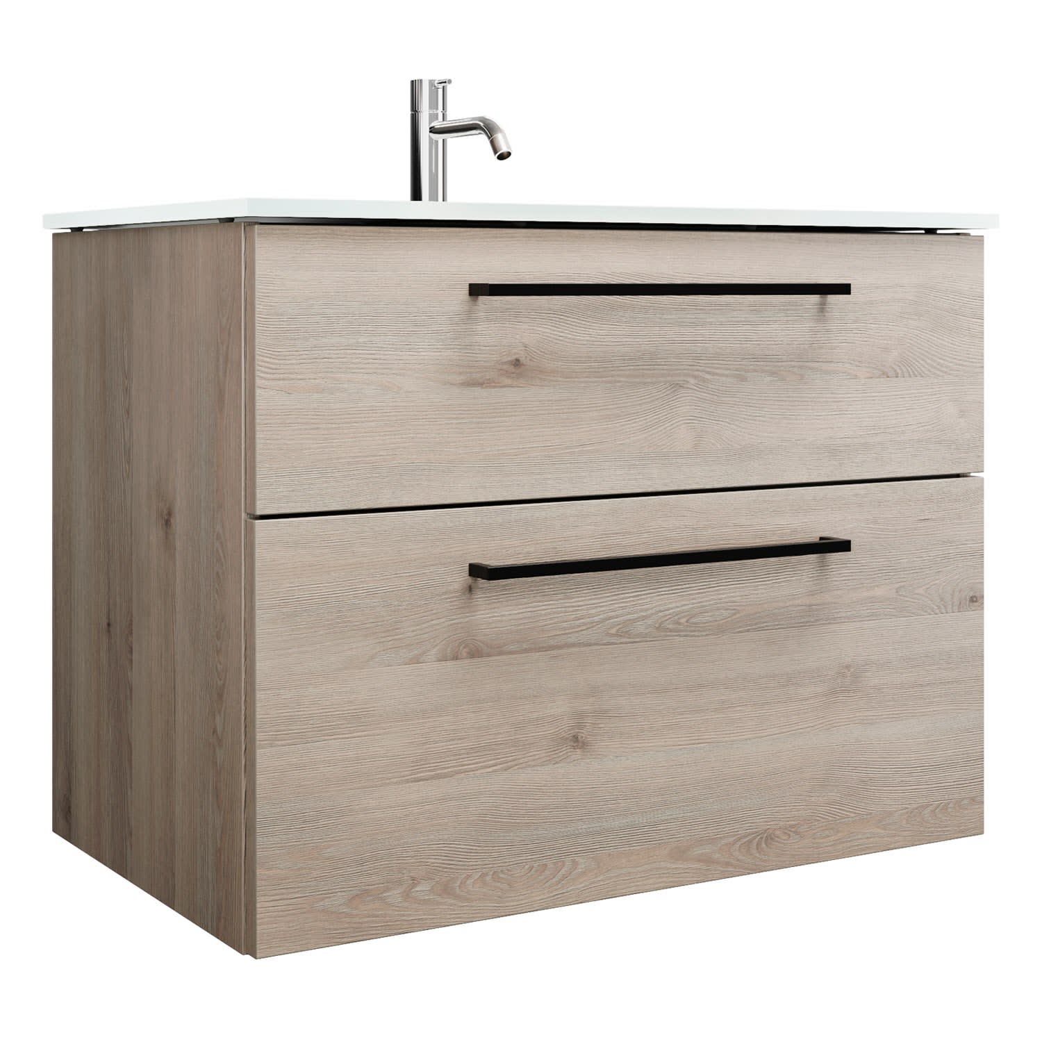 - 1 Schublade oben, 35 cm tief, mit Siphonausschnitt und Inneneinteilung