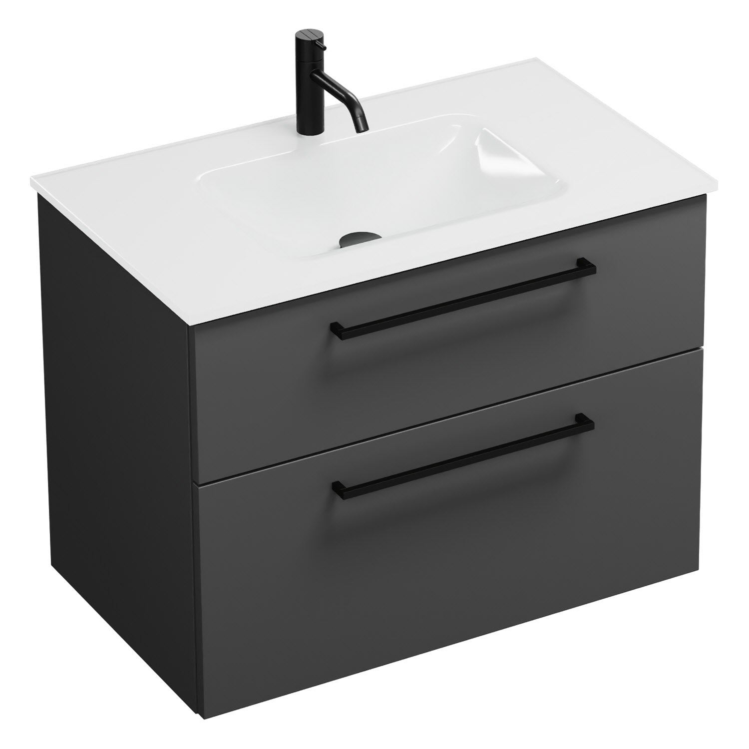 burgbad Eqio Waschtischkombination mit Glaswaschtisch 82 cm, mit Stangengriff G0234