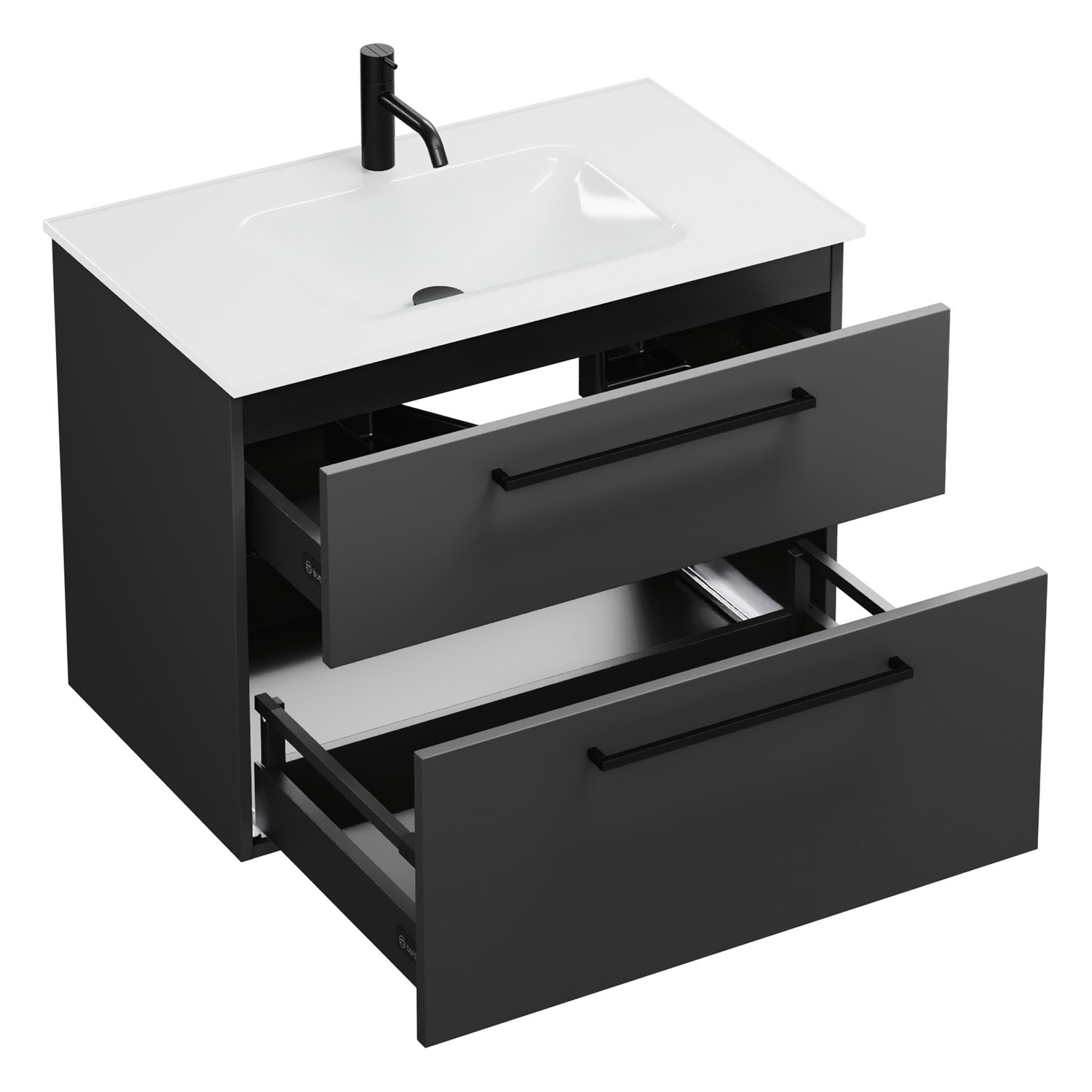 - Schublade und Auszug als Vollauszug mit Selbsteinzugmechanismus und Anschlagdämpfung