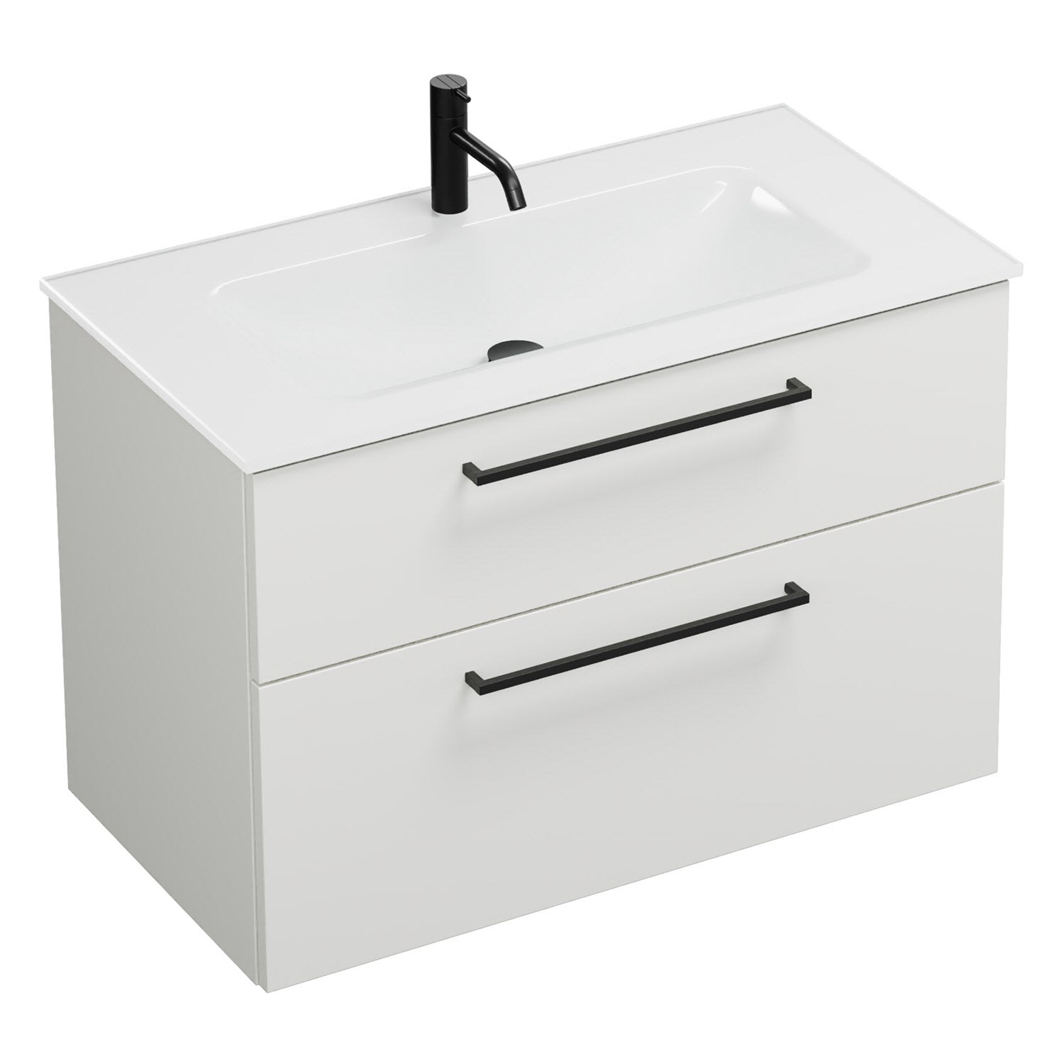 burgbad Eqio Waschtischkombination mit Glaswaschtisch 92 cm, mit Stangengriff G0234