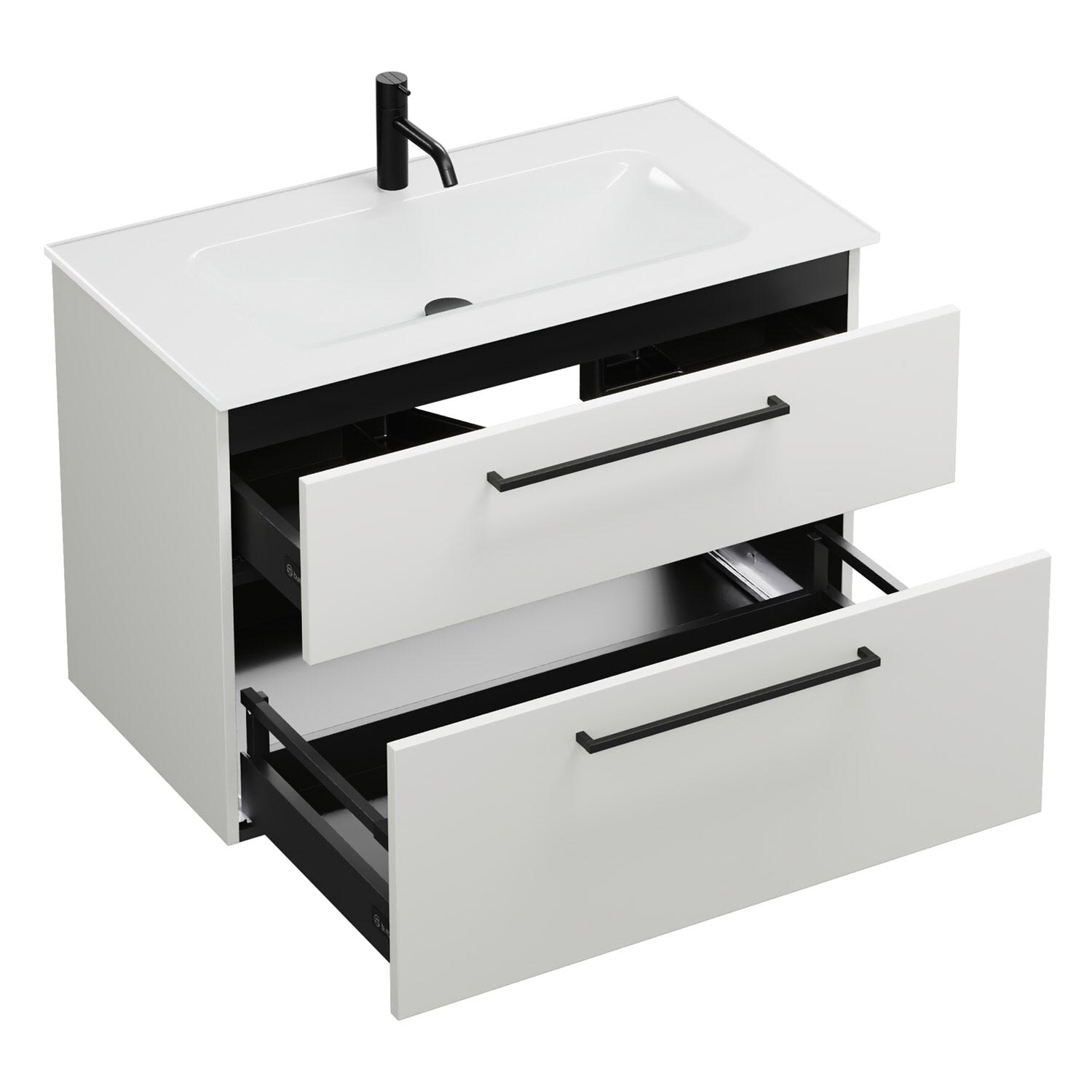- 1 Schublade oben, 35 cm tief, mit Siphonausschnitt und Inneneinteilung