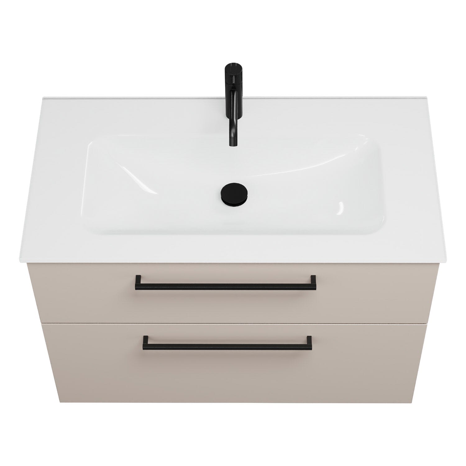 - 1 Schublade oben, 35 cm tief, mit Siphonausschnitt und Inneneinteilung
