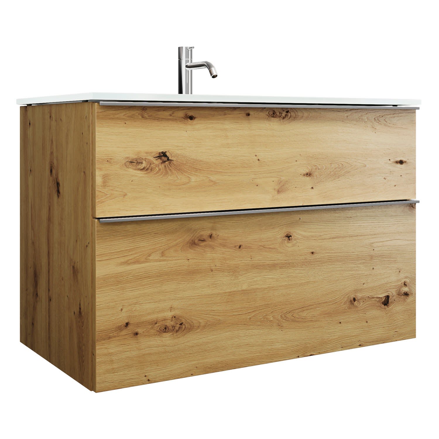 burgbad Eqio Waschtischkombination mit Glaswaschtisch 92 cm, mit Griffleiste G0251
