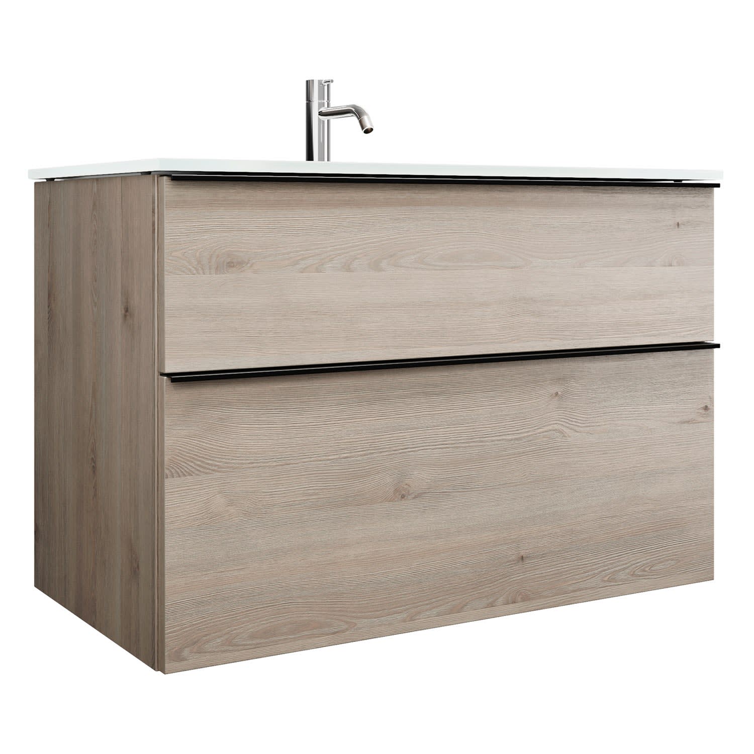 burgbad Eqio Waschtischkombination mit Glaswaschtisch 92 cm, mit Griffleiste G0252