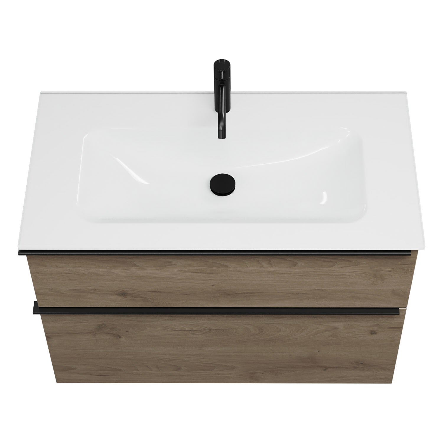 burgbad Eqio Waschtischkombination mit Glaswaschtisch 92 cm, mit Griffleiste G0252