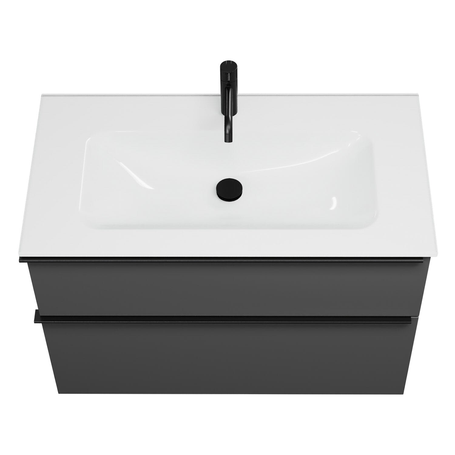 - 1 Schublade oben, 35 cm tief, mit Siphonausschnitt und Inneneinteilung