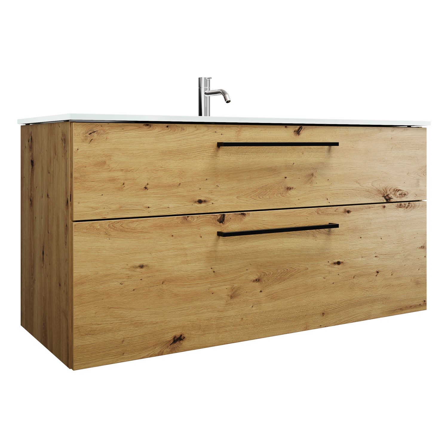 - 1 Schublade oben, 35 cm tief, mit Siphonausschnitt und Inneneinteilung