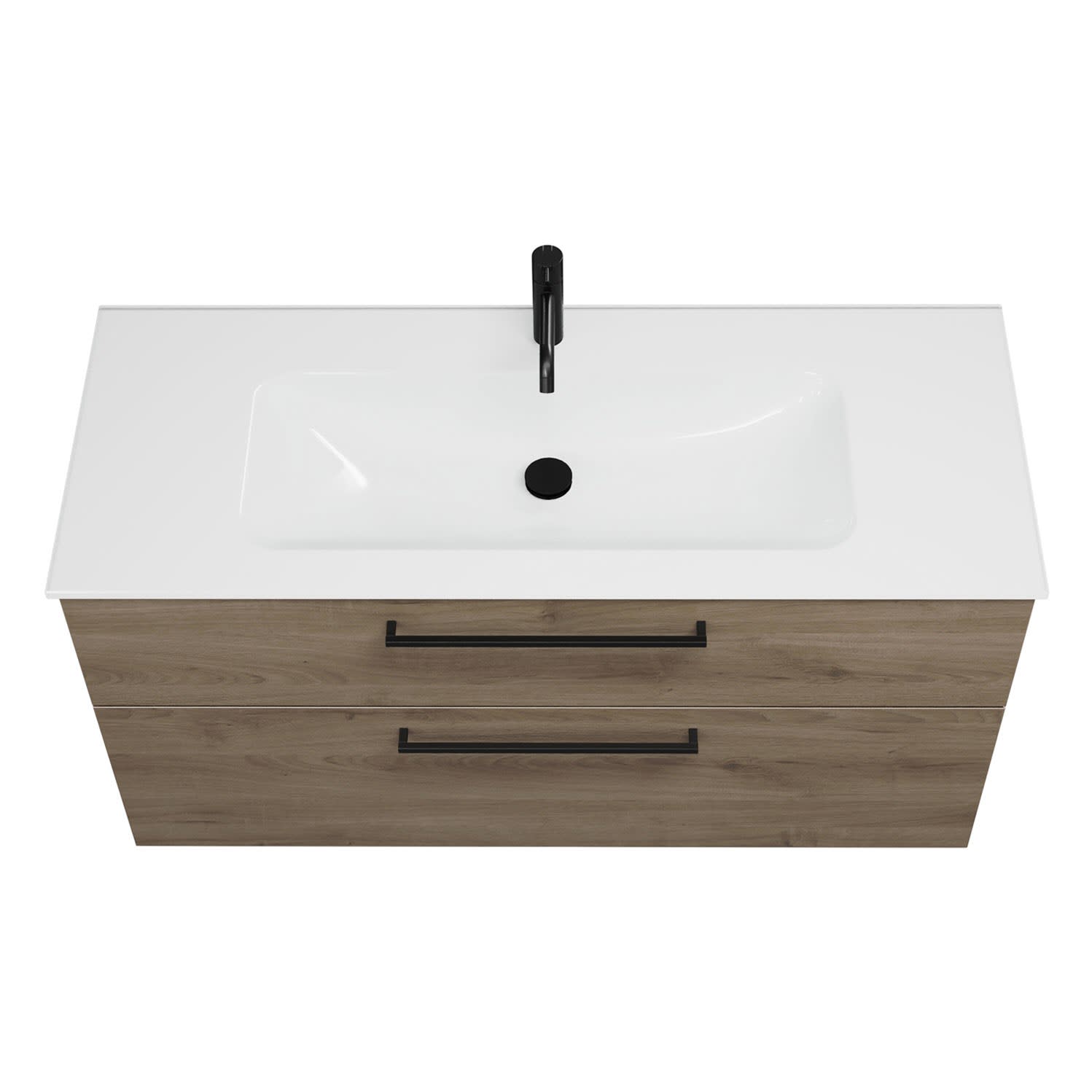 burgbad Eqio Waschtischkombination mit Glaswaschtisch 122 cm, mit Stangengriff G0234