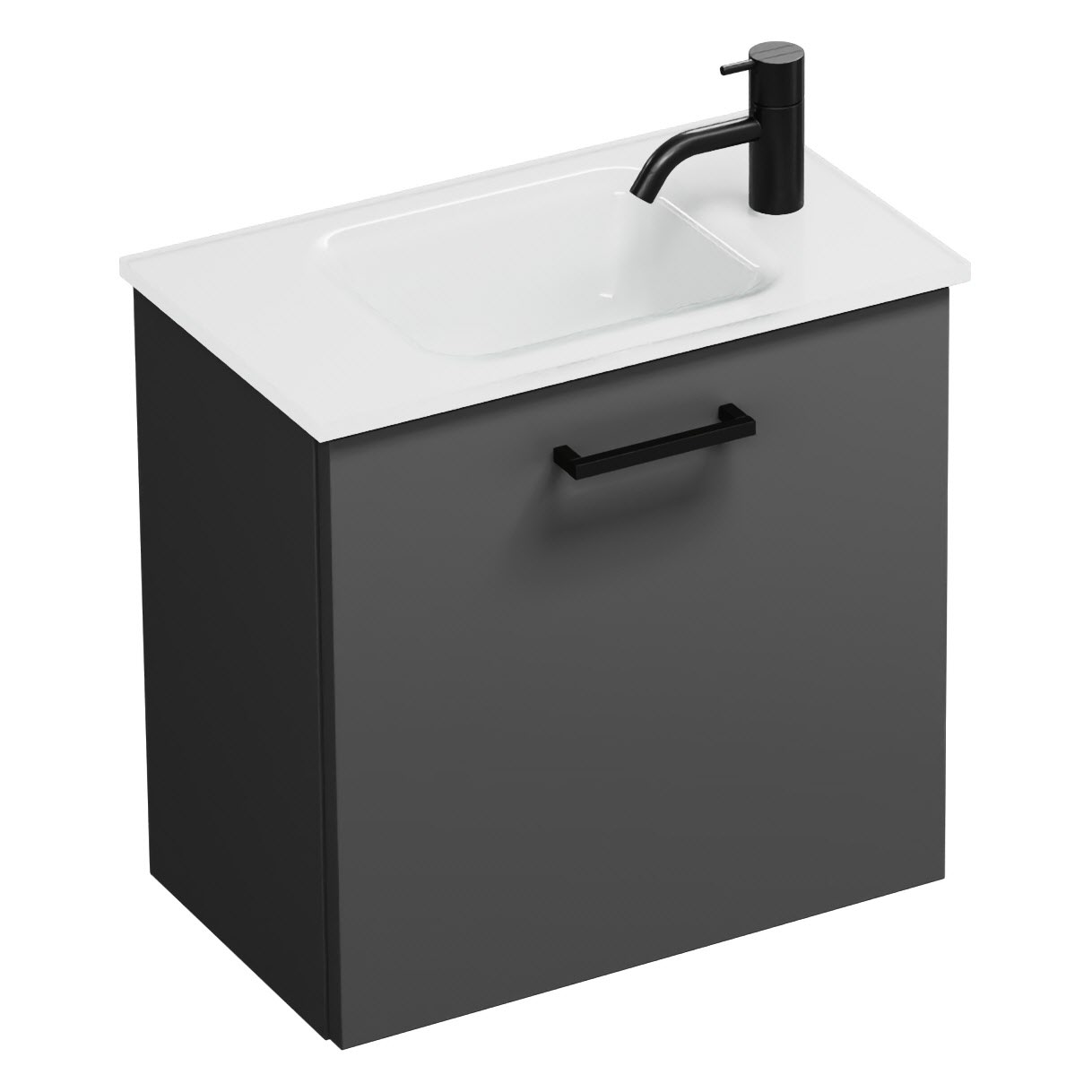 burgbad Eqio Waschtischkombination mit Glaswaschtisch 52 cm, mit Stangengriff G0234