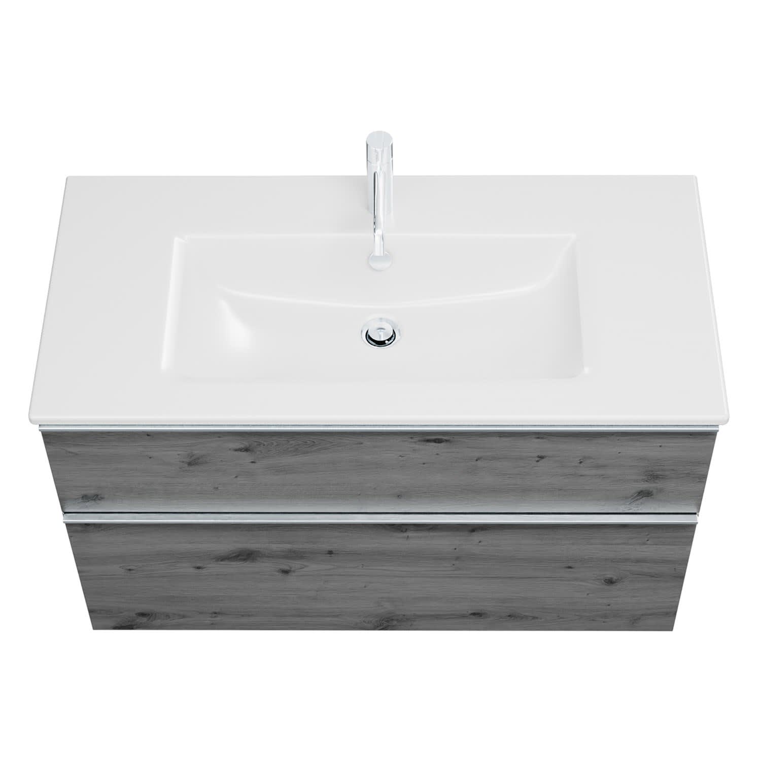 burgbad Eqio Waschtischkombination mit Keramik-Waschtisch Slim, 102 cm, mit Griffleiste G0251