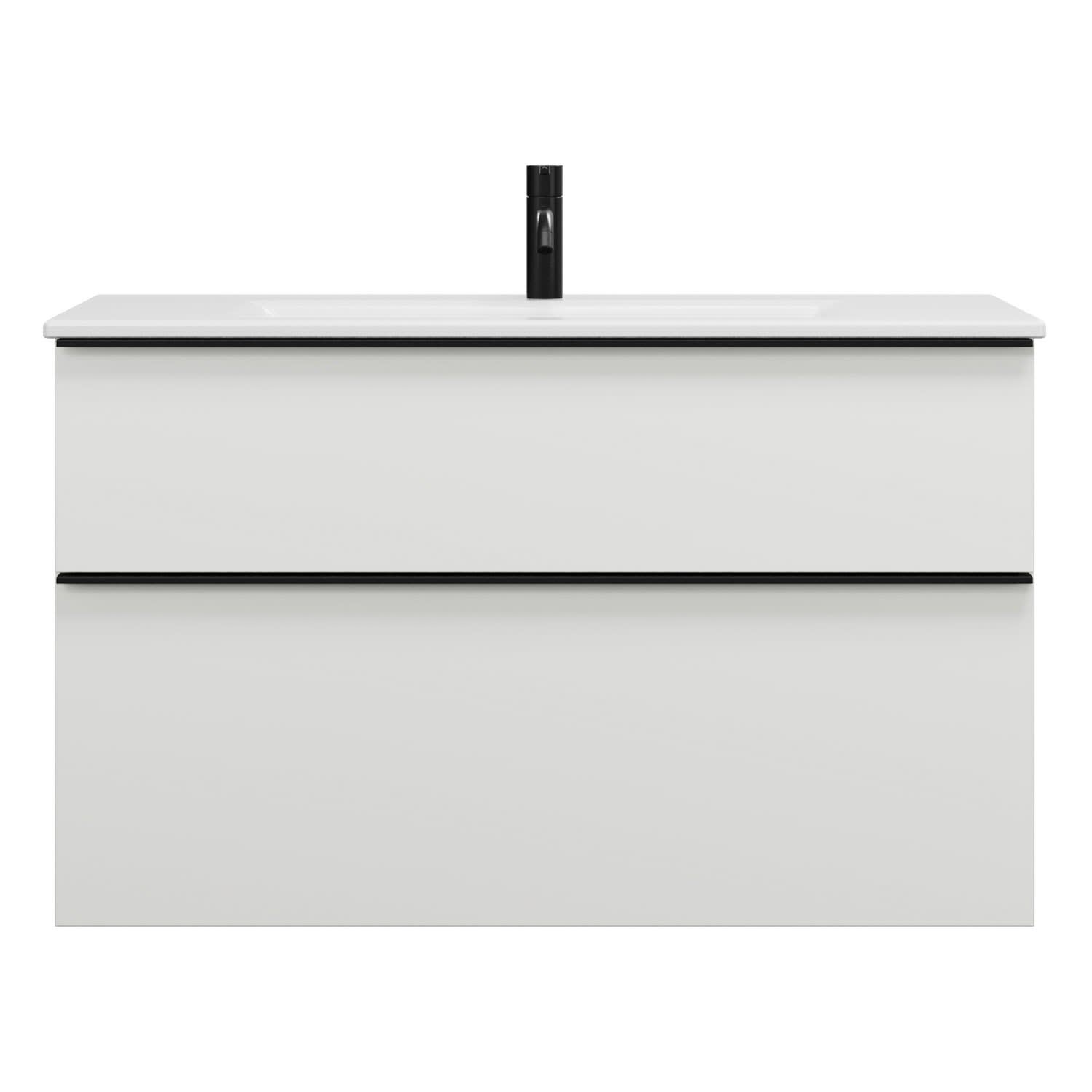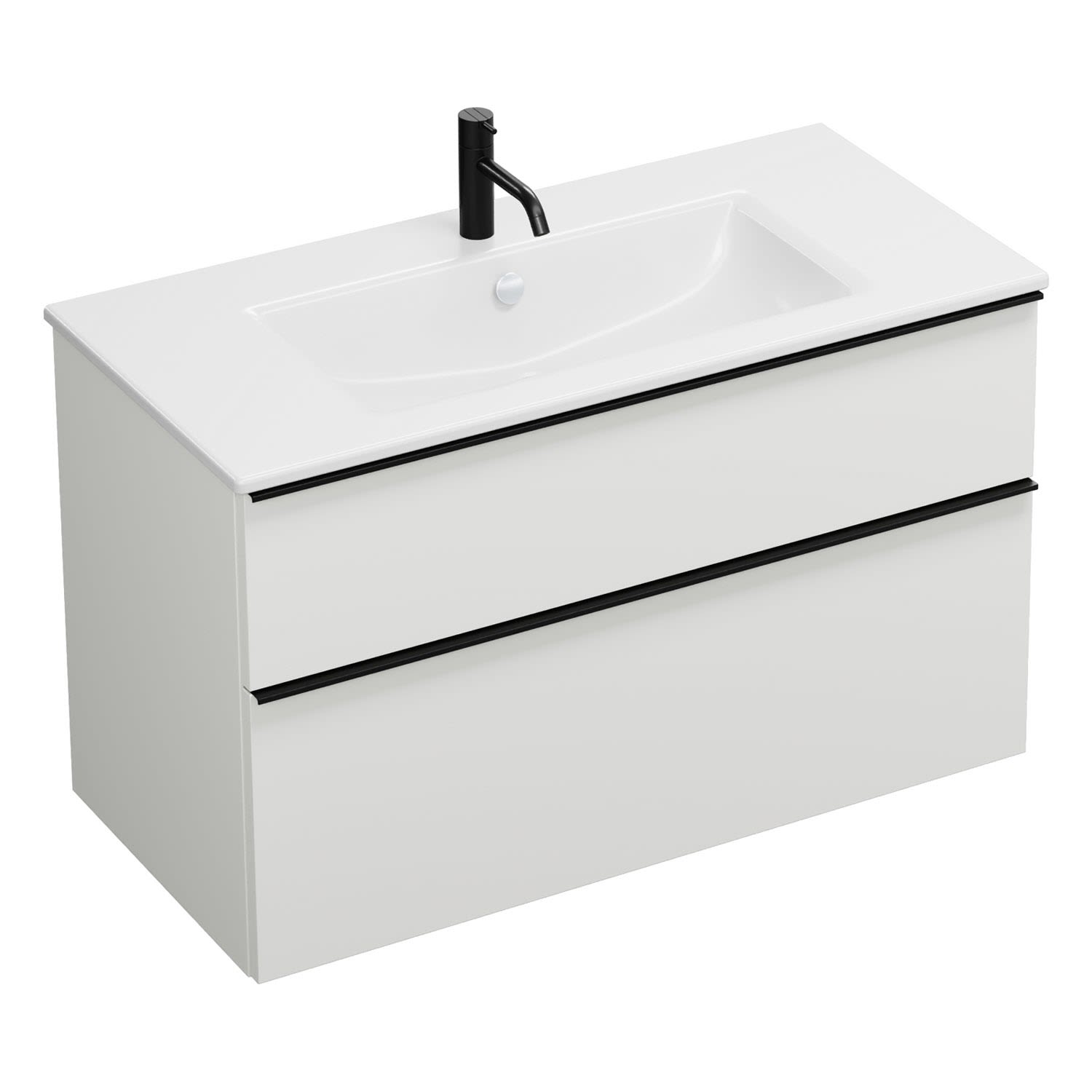 burgbad Eqio Waschtischkombination mit Keramik-Waschtisch Slim, 102 cm, mit Griffleiste G0252