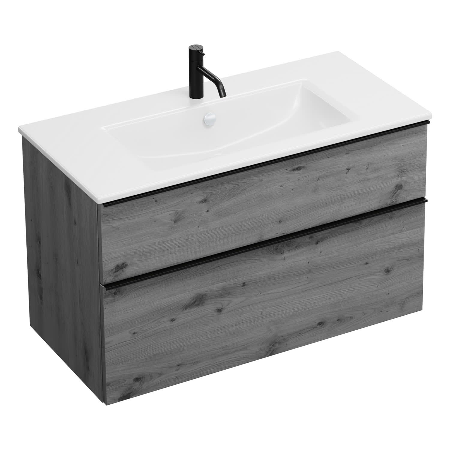 burgbad Eqio Waschtischkombination mit Keramik-Waschtisch Slim, 102 cm, mit Griffleiste G0252