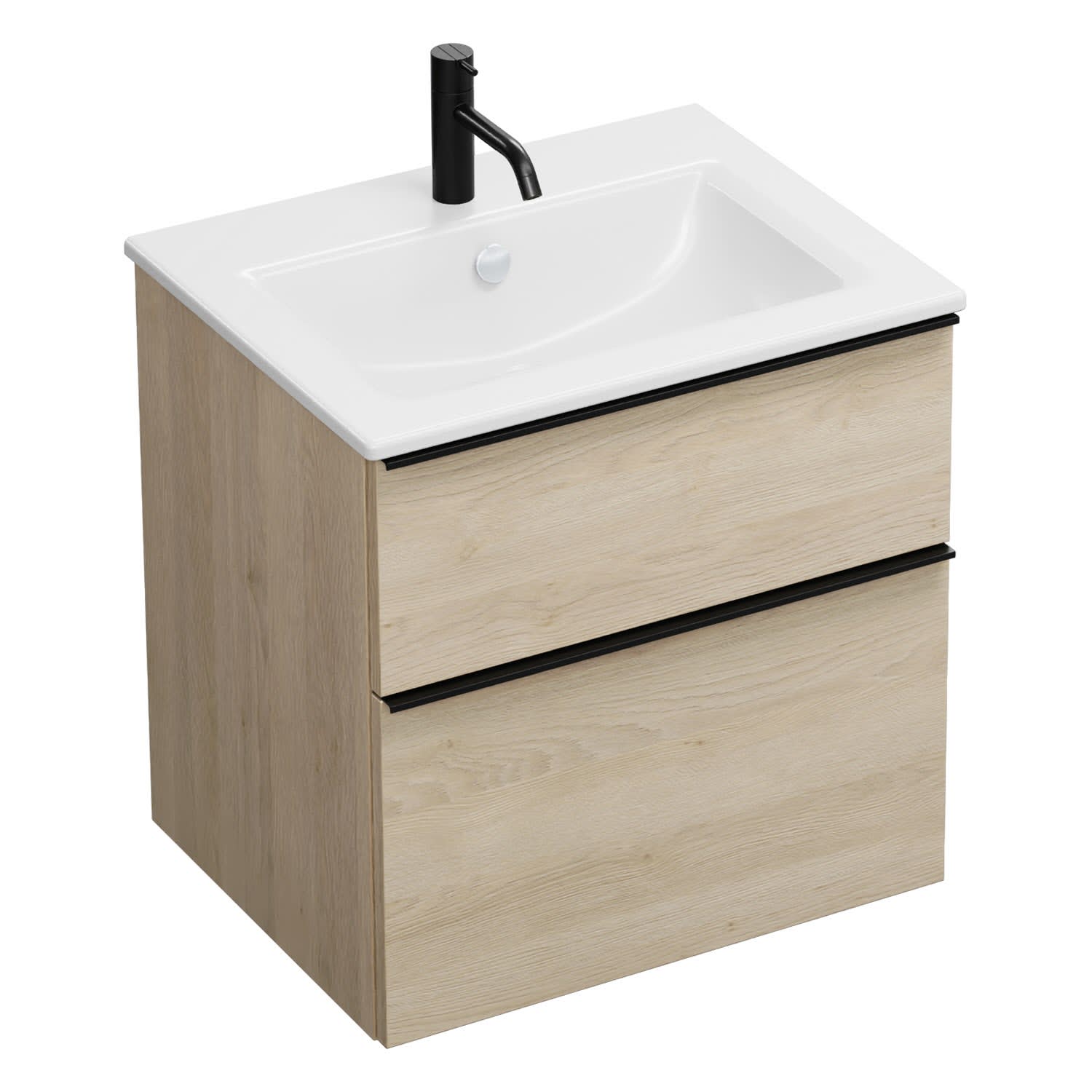 burgbad Eqio Waschtischkombination mit Keramik-Waschtisch Slim, 62 cm, mit Griffleiste G0252