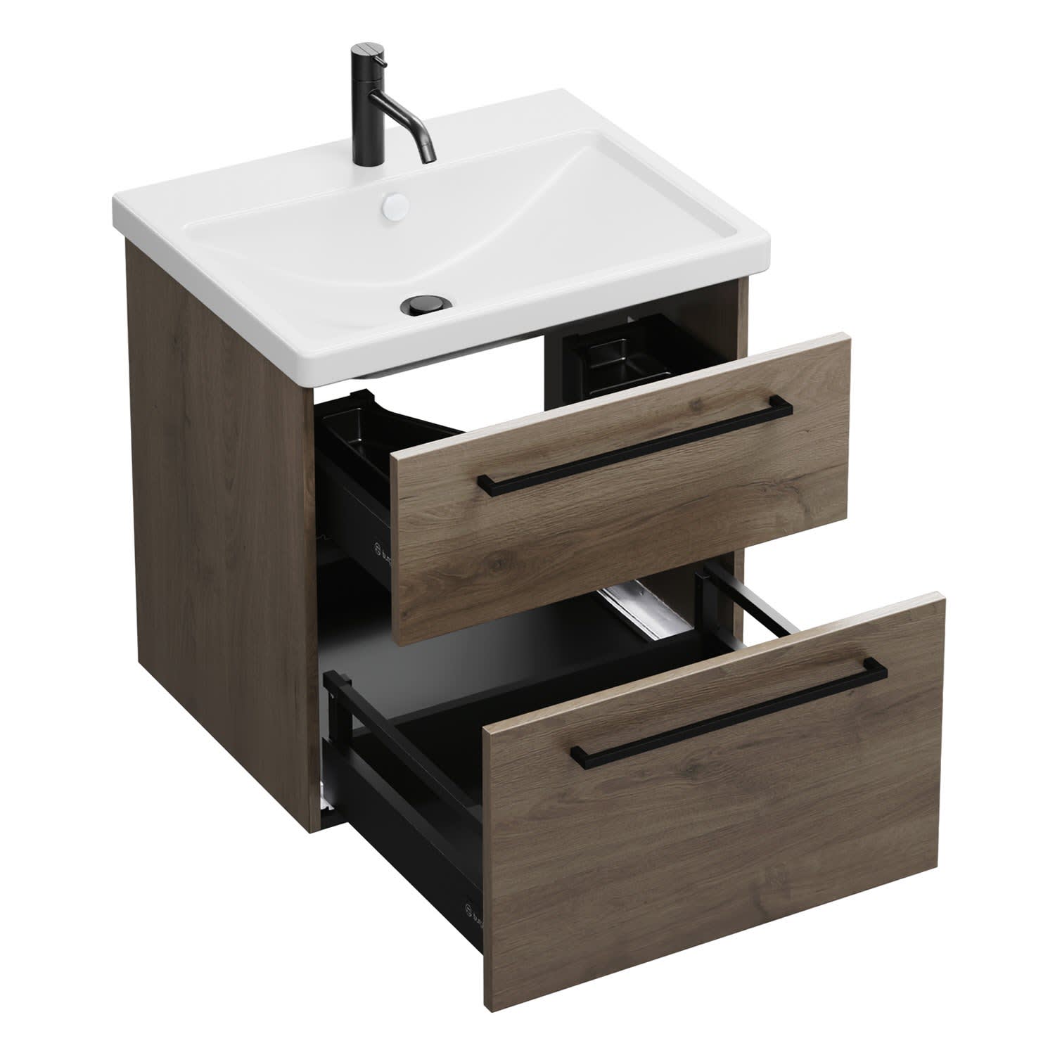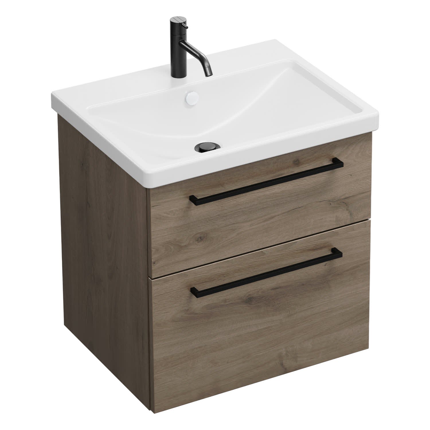 burgbad Eqio Waschtischkombination mit Keramik-Waschtisch, 63 cm, mit Stangengriff G0234
