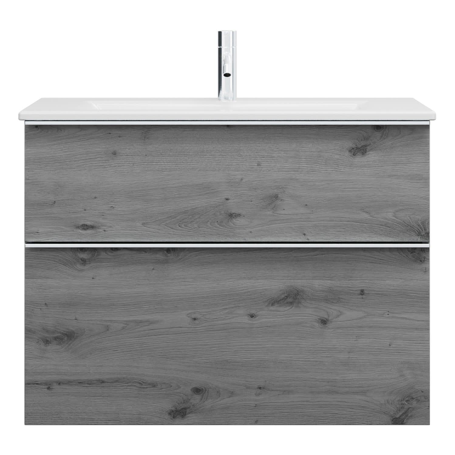 burgbad Eqio Waschtischkombination mit Keramik-Waschtisch Slim, 82 cm, mit Griffleiste G0251