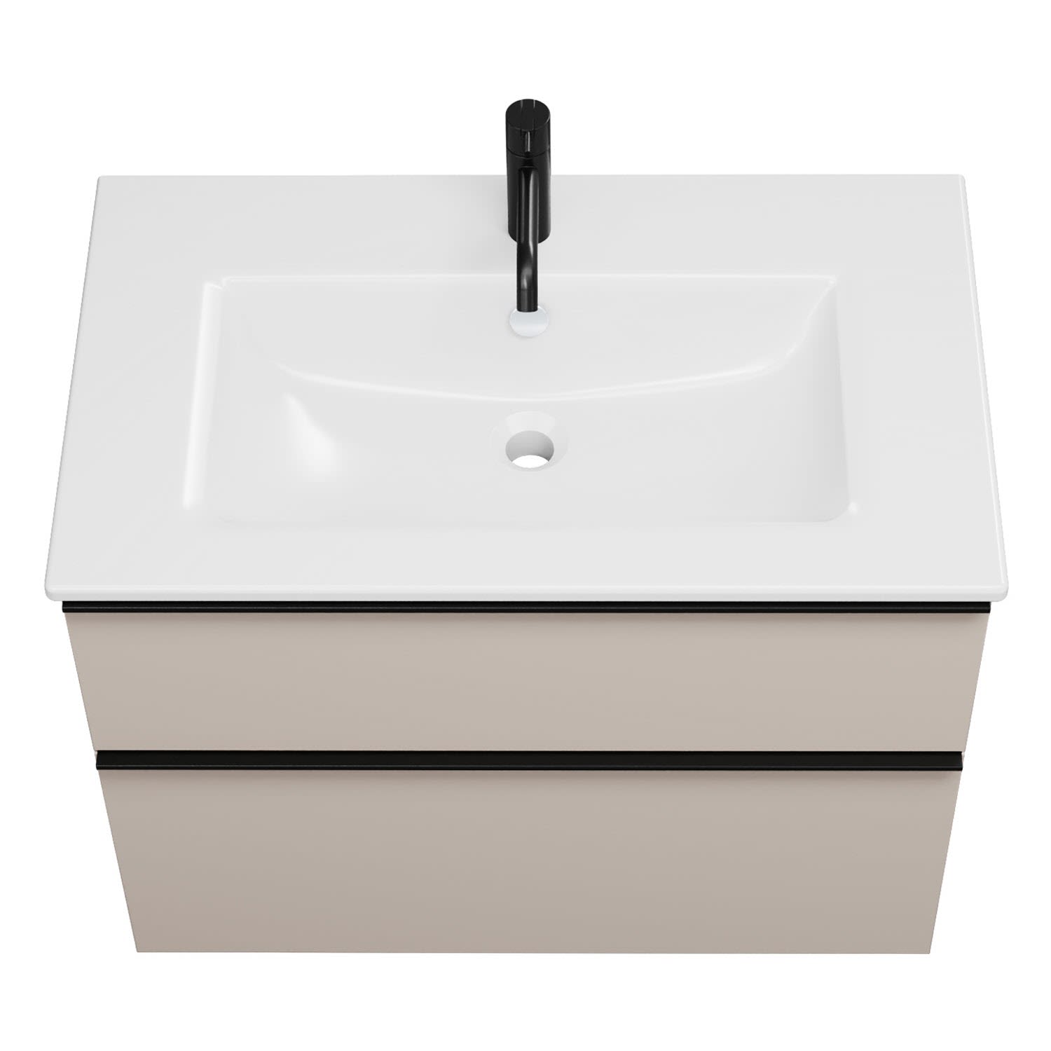 - 1 Schublade oben, 35 cm tief, mit Siphonausschnitt und Inneneinteilung