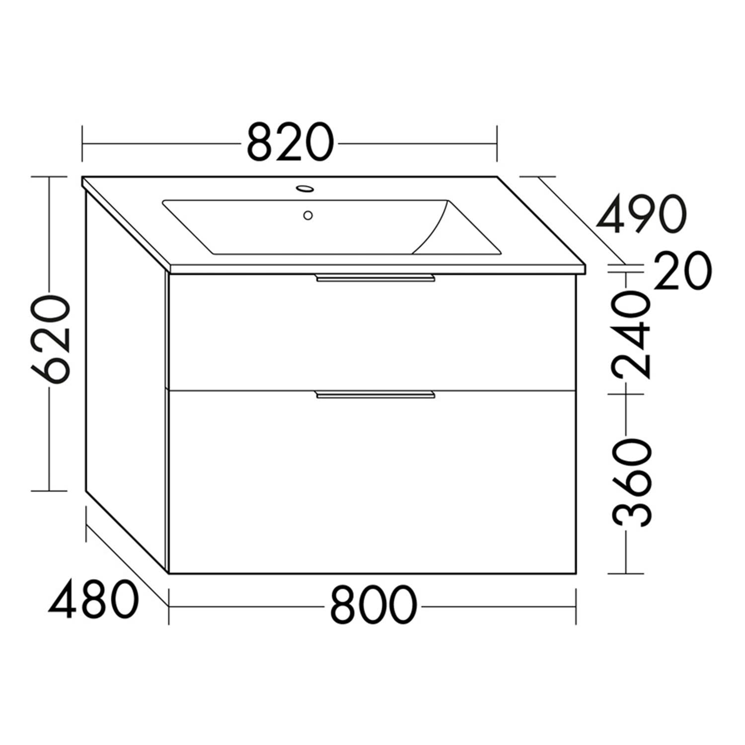burgbad Eqio Waschtischkombination mit Keramik-Waschtisch Slim, 82 cm, mit Griffleiste G0252