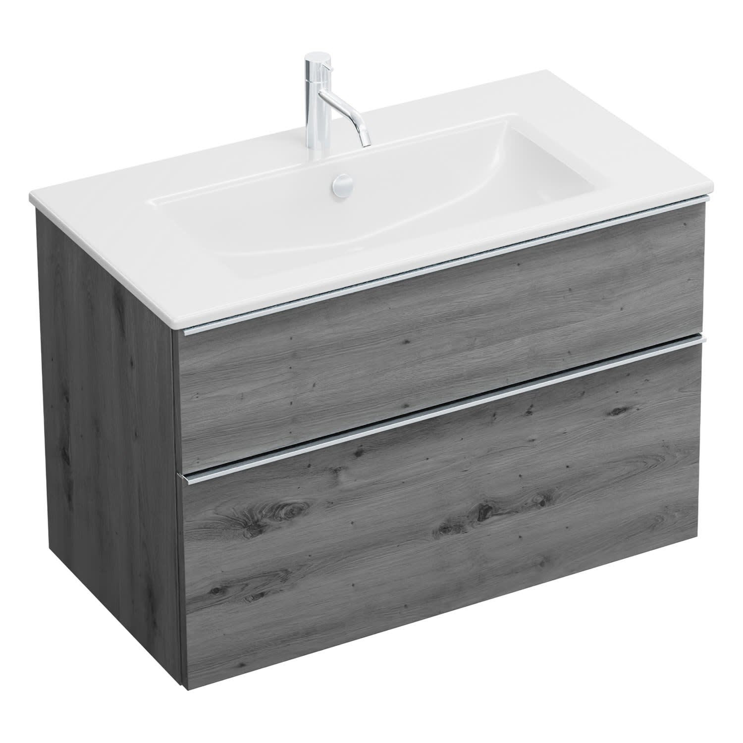 burgbad Eqio Waschtischkombination mit Keramik-Waschtisch Slim, 92 cm, mit Griffleiste G0251