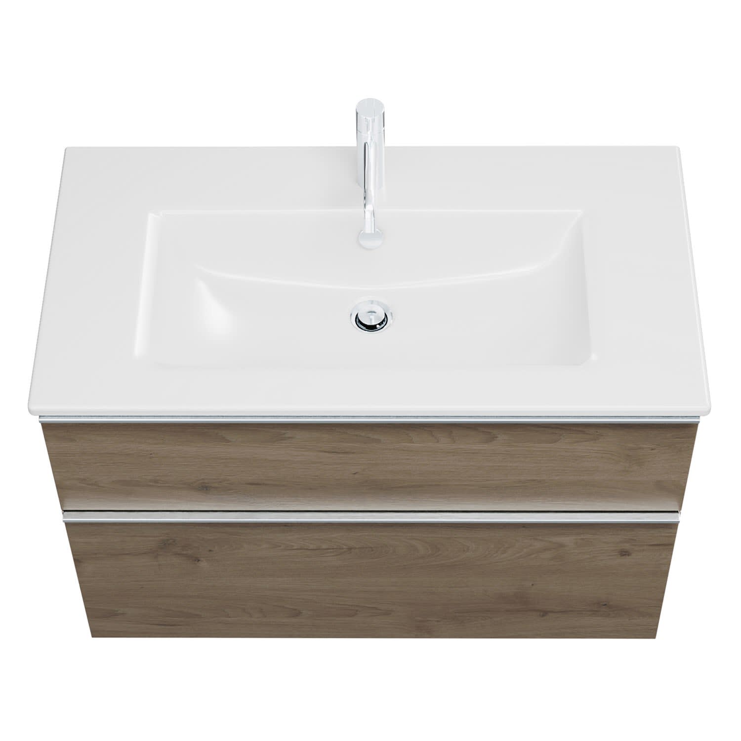 burgbad Eqio Waschtischkombination mit Keramik-Waschtisch Slim, 92 cm, mit Griffleiste G0251