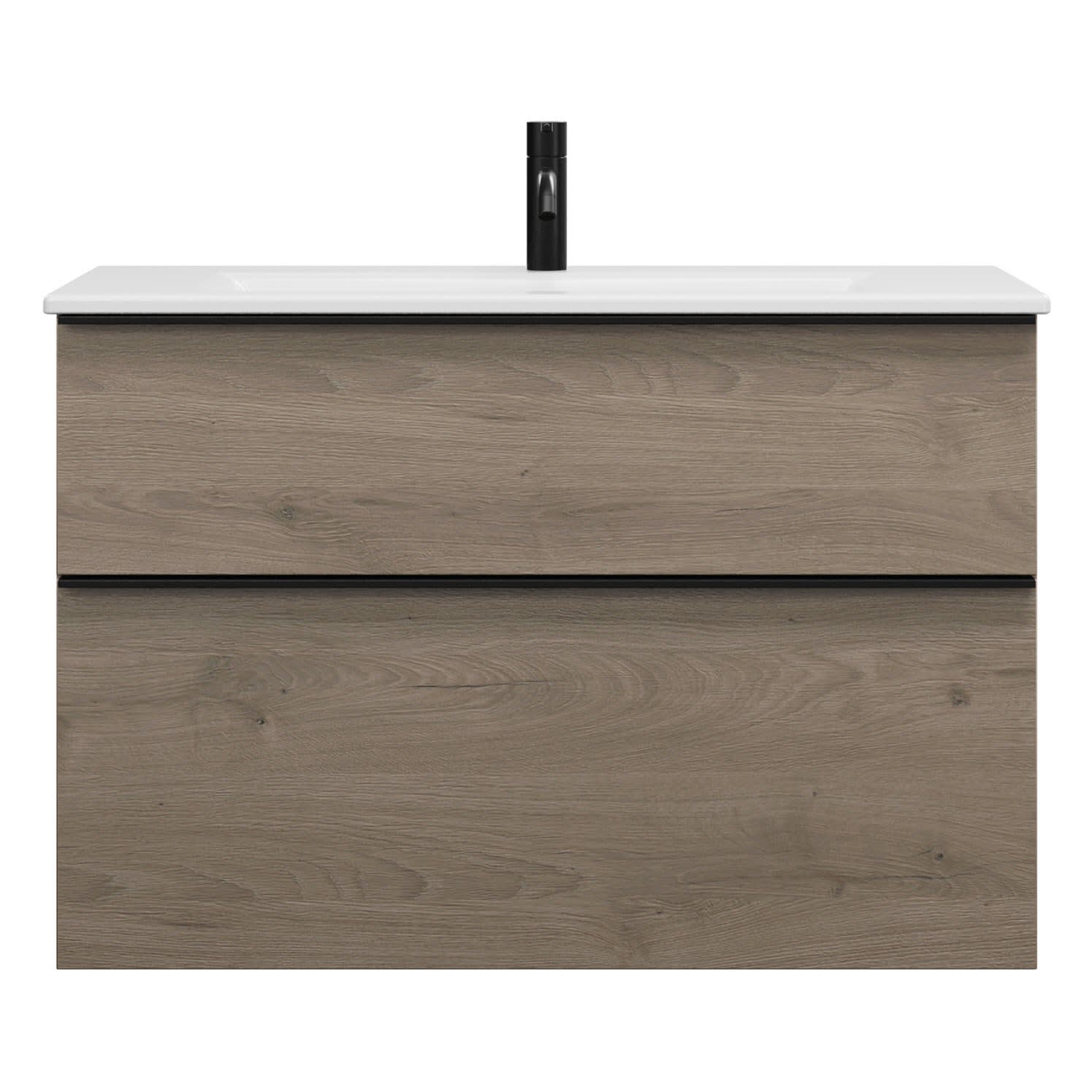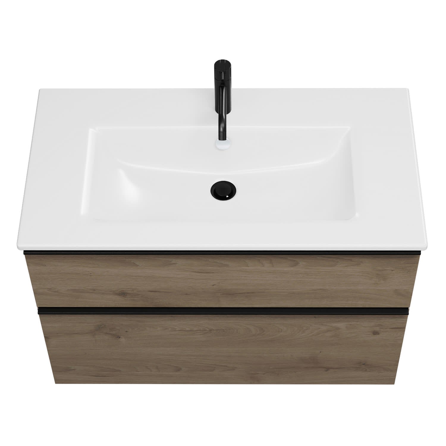 - 1 Schublade oben, 35 cm tief, mit Siphonausschnitt und Inneneinteilung