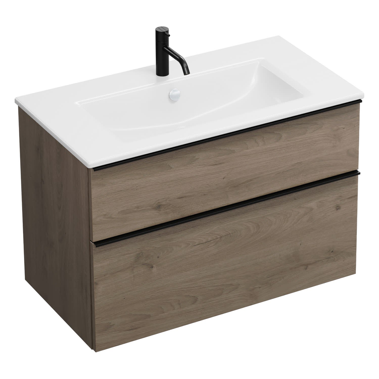 burgbad Eqio Waschtischkombination mit Keramik-Waschtisch Slim, 92 cm, mit Griffleiste G0252