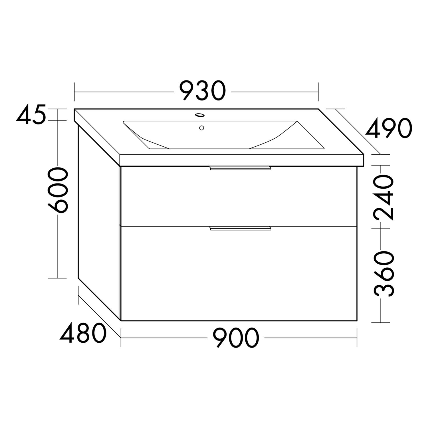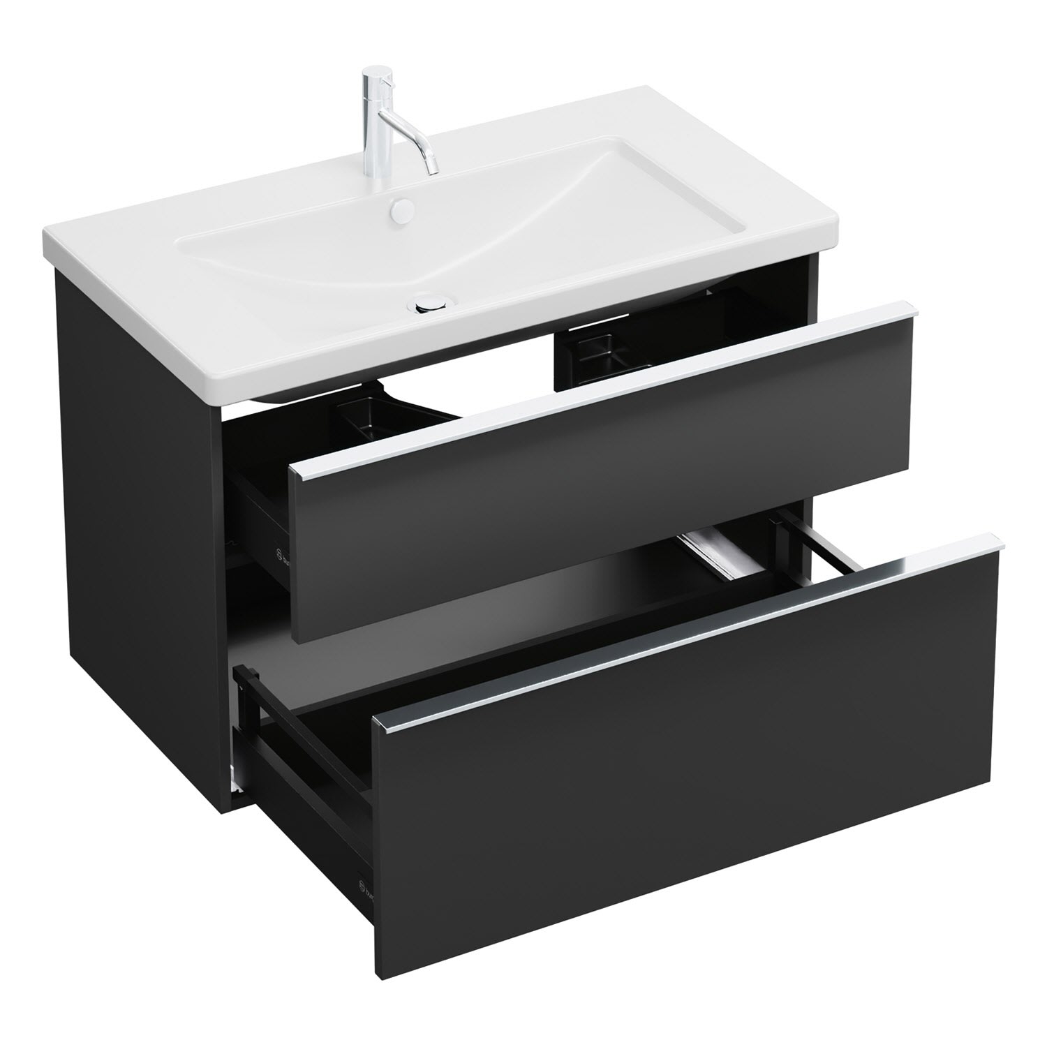 - 1 Schublade oben, 35 cm tief, mit Siphonausschnitt und Inneneinteilung
