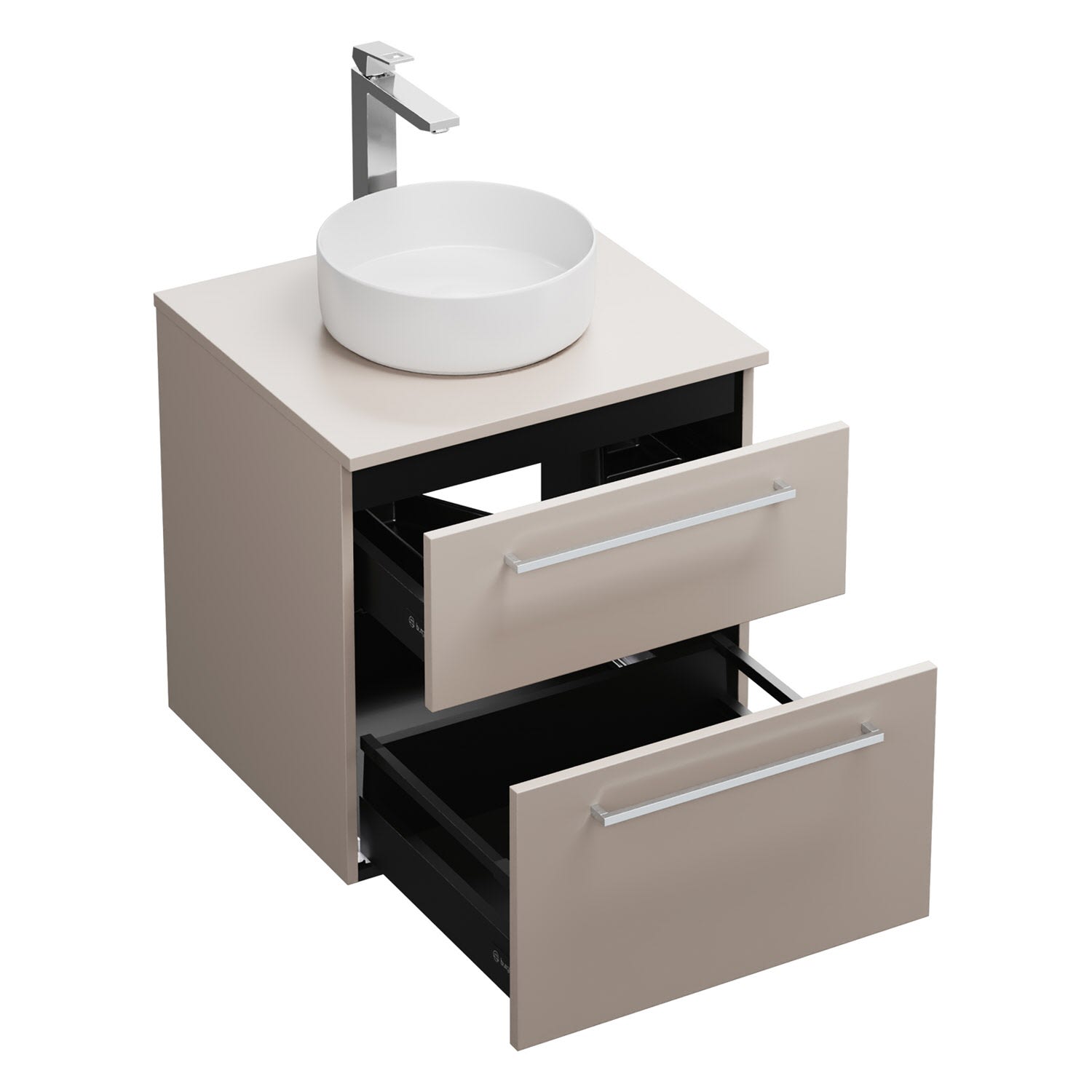 burgbad Eqio Waschtischkombination mit Keramik-Aufsatzwaschtisch 60 cm, mit Stangengriff P95
