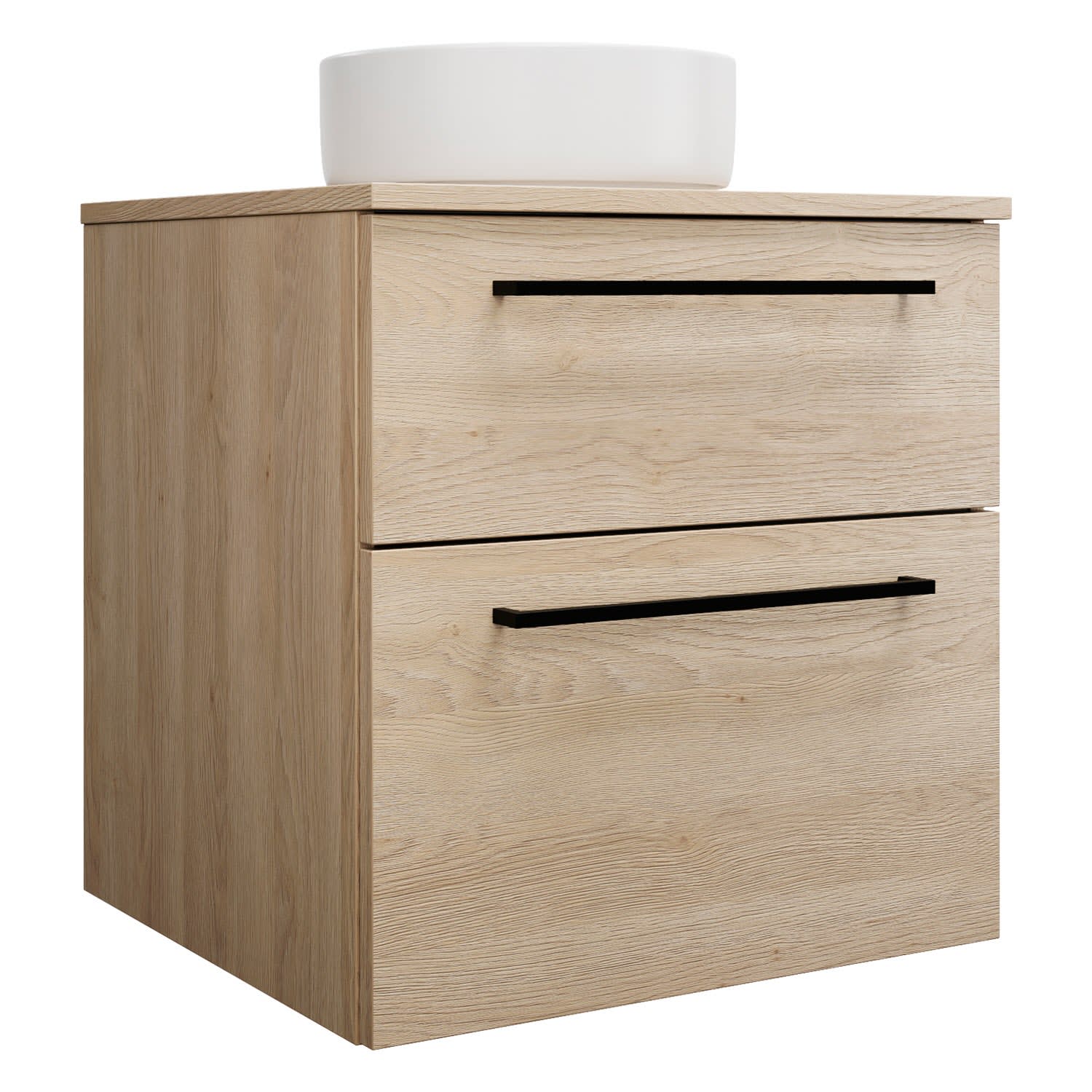 burgbad Eqio Waschtischkombination mit Keramik-Aufsatzwaschtisch 60 cm, mit Stangengriff G0234