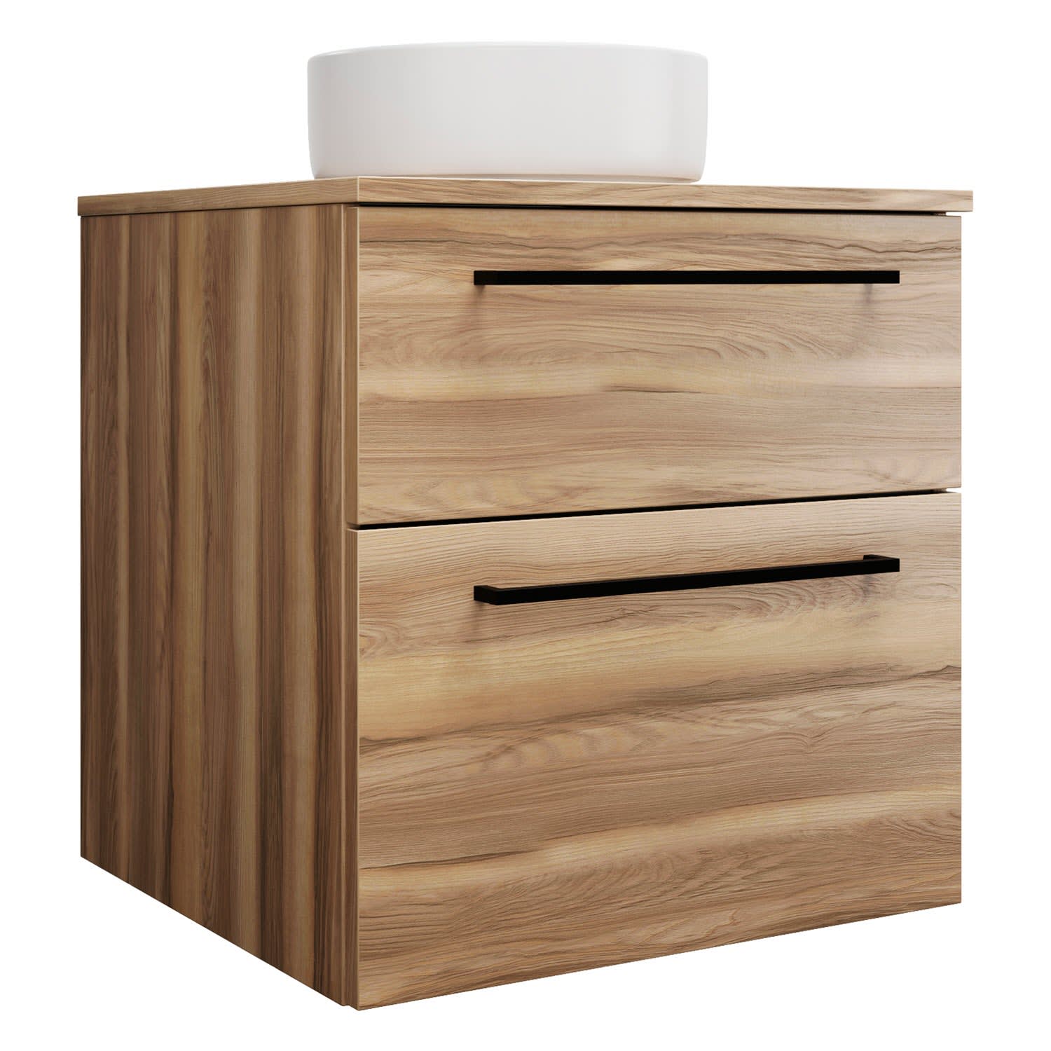 burgbad Eqio Waschtischkombination mit Keramik-Aufsatzwaschtisch 60 cm, mit Stangengriff G0234