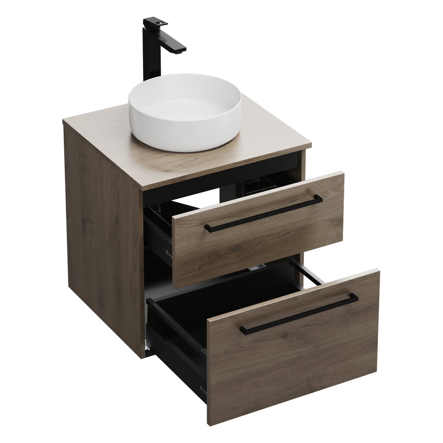 burgbad Eqio Waschtischkombination mit Keramik-Aufsatzwaschtisch 60 cm, mit Stangengriff G0234