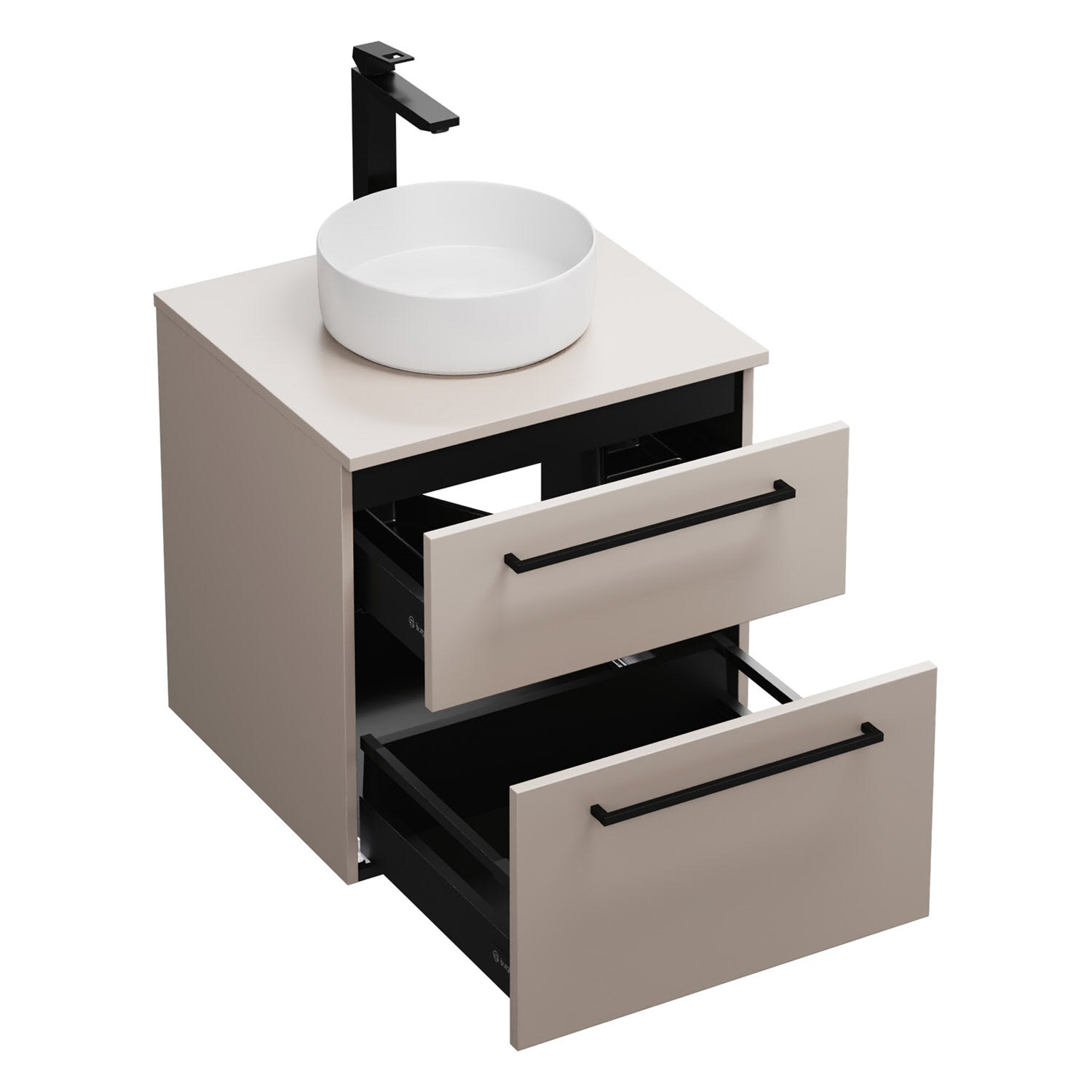 burgbad Eqio Waschtischkombination mit Keramik-Aufsatzwaschtisch 60 cm, mit Stangengriff G0234