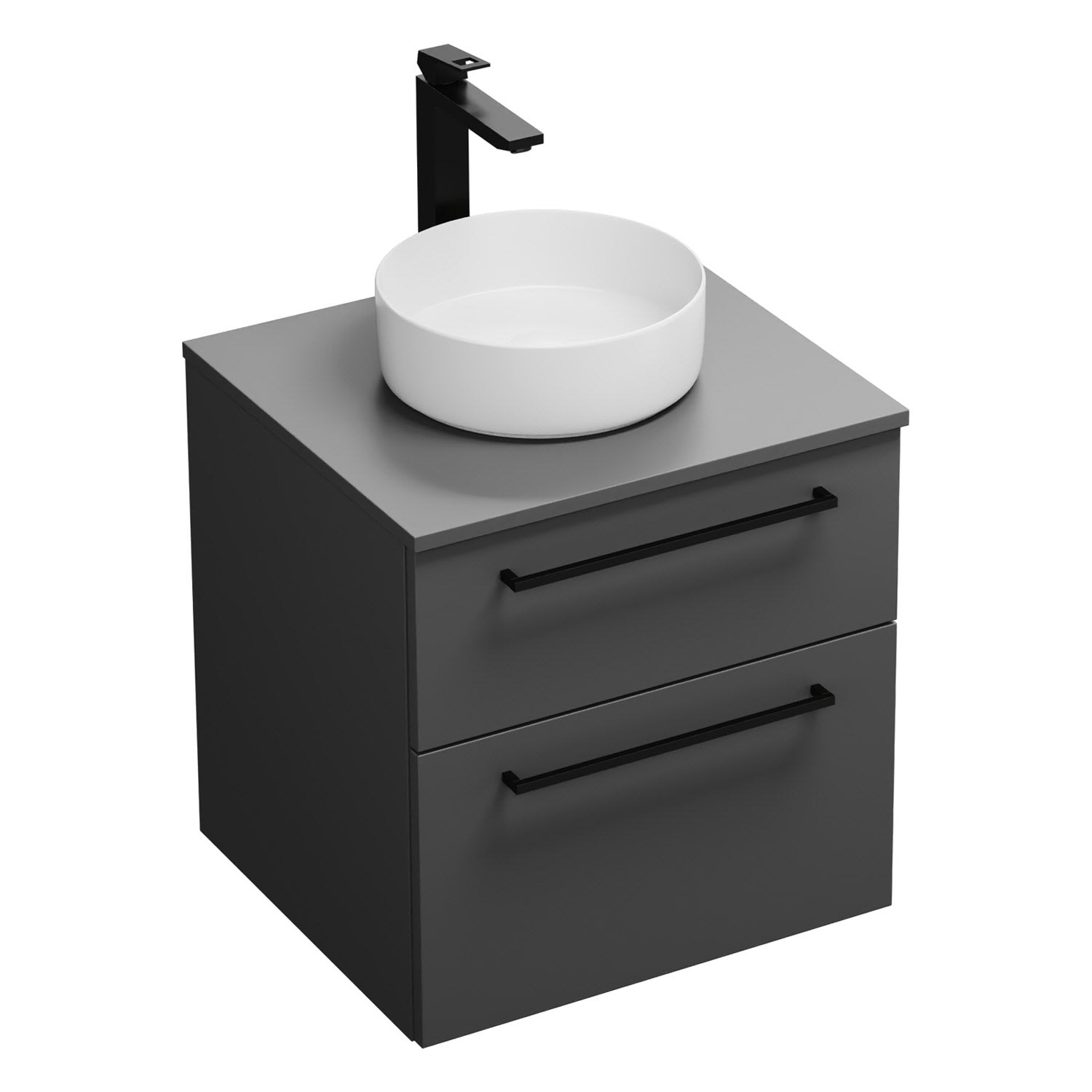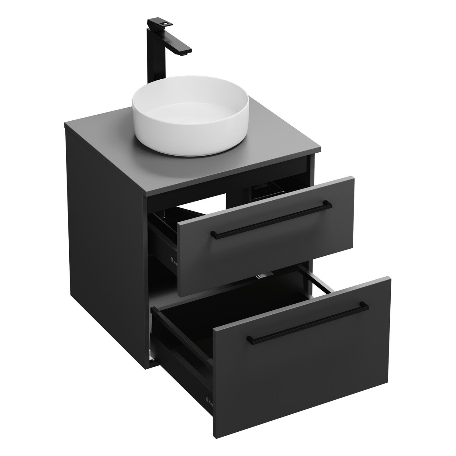 burgbad Eqio Waschtischkombination mit Keramik-Aufsatzwaschtisch 60 cm, mit Stangengriff G0234