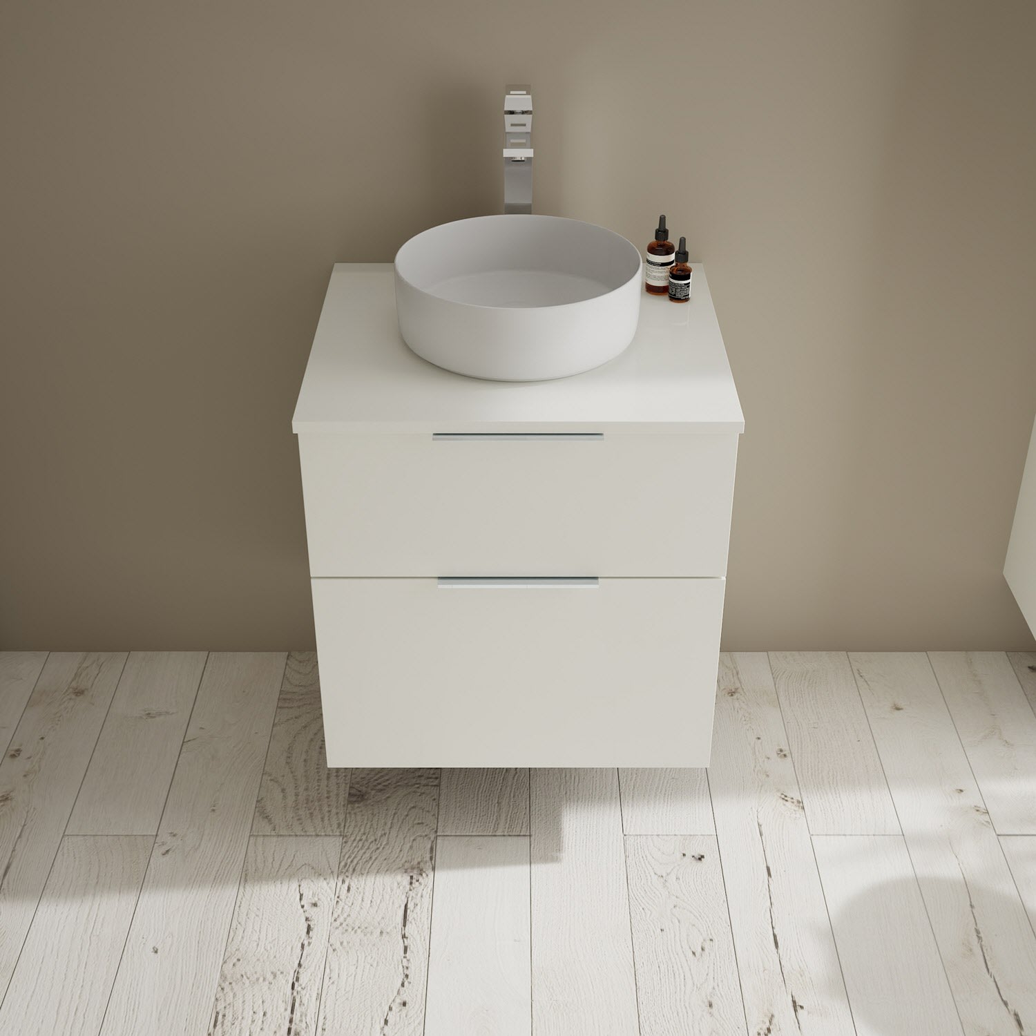 burgbad Eqio Waschtischkombination mit Keramik-Aufsatzwaschtisch 60 cm, Griff G0146