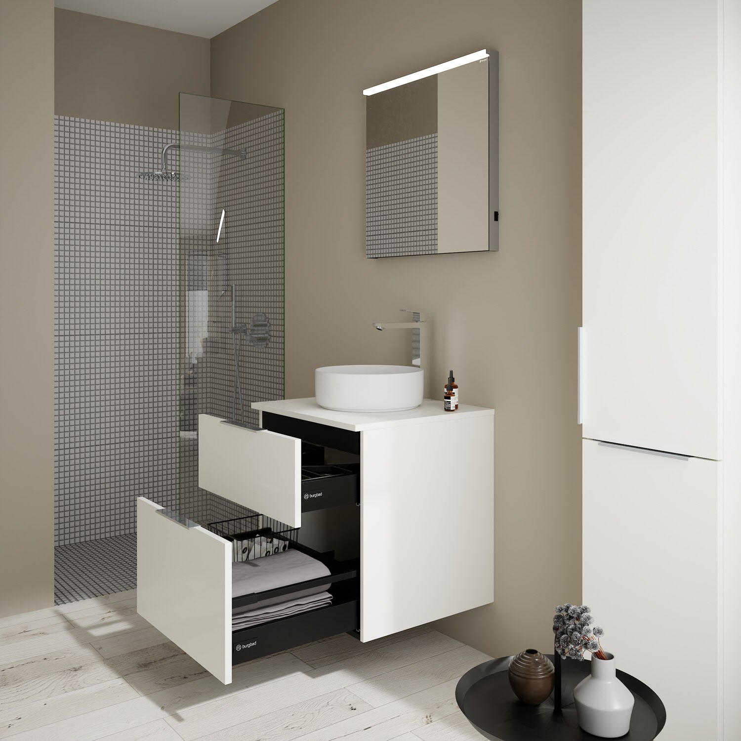 burgbad Eqio Waschtischkombination mit Keramik-Aufsatzwaschtisch 60 cm, Griff G0146