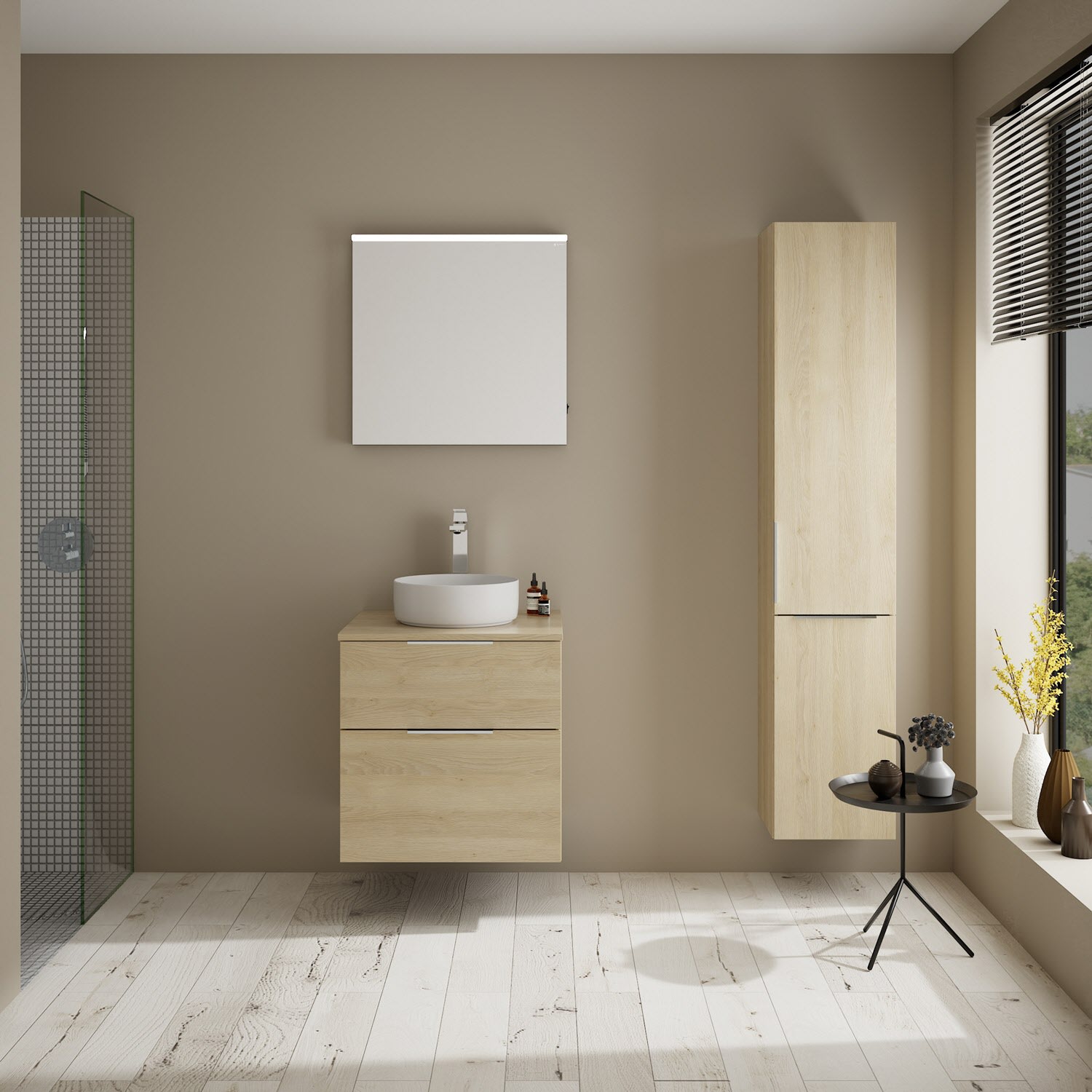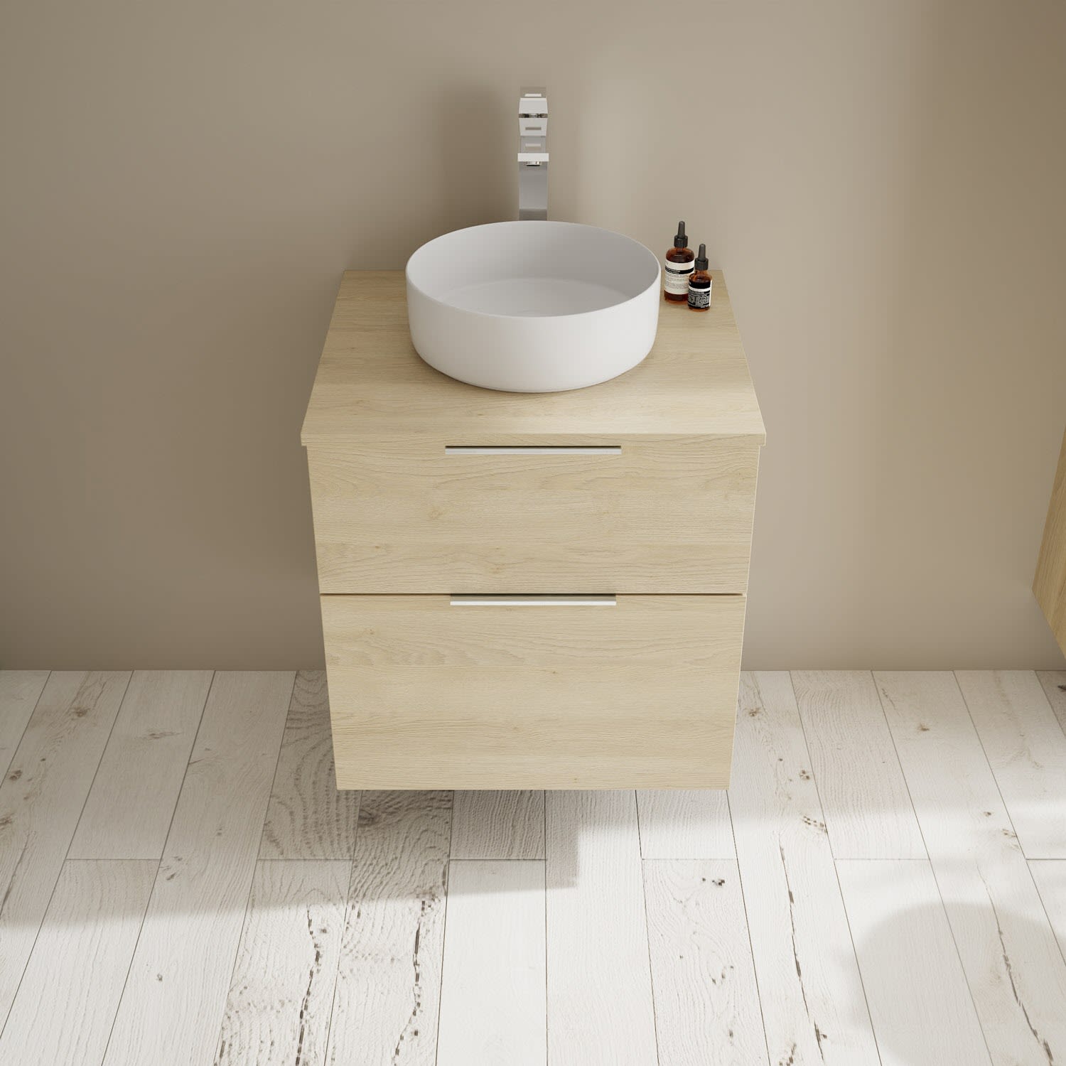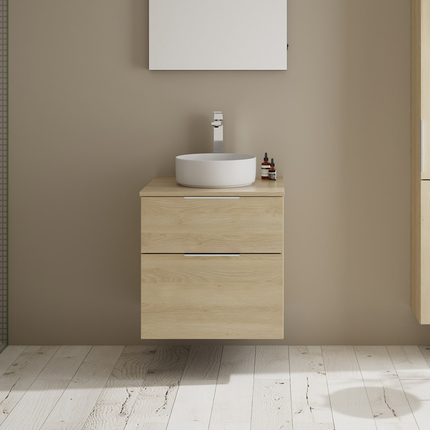 burgbad Eqio Waschtischkombination mit Keramik-Aufsatzwaschtisch 60 cm, Griff G0146
