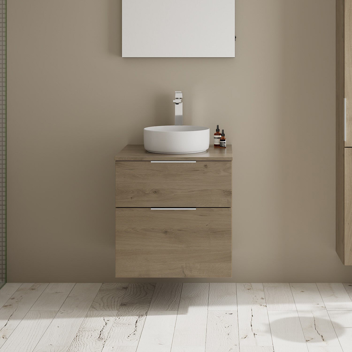 burgbad Eqio Waschtischkombination mit Keramik-Aufsatzwaschtisch 60 cm, Griff G0146