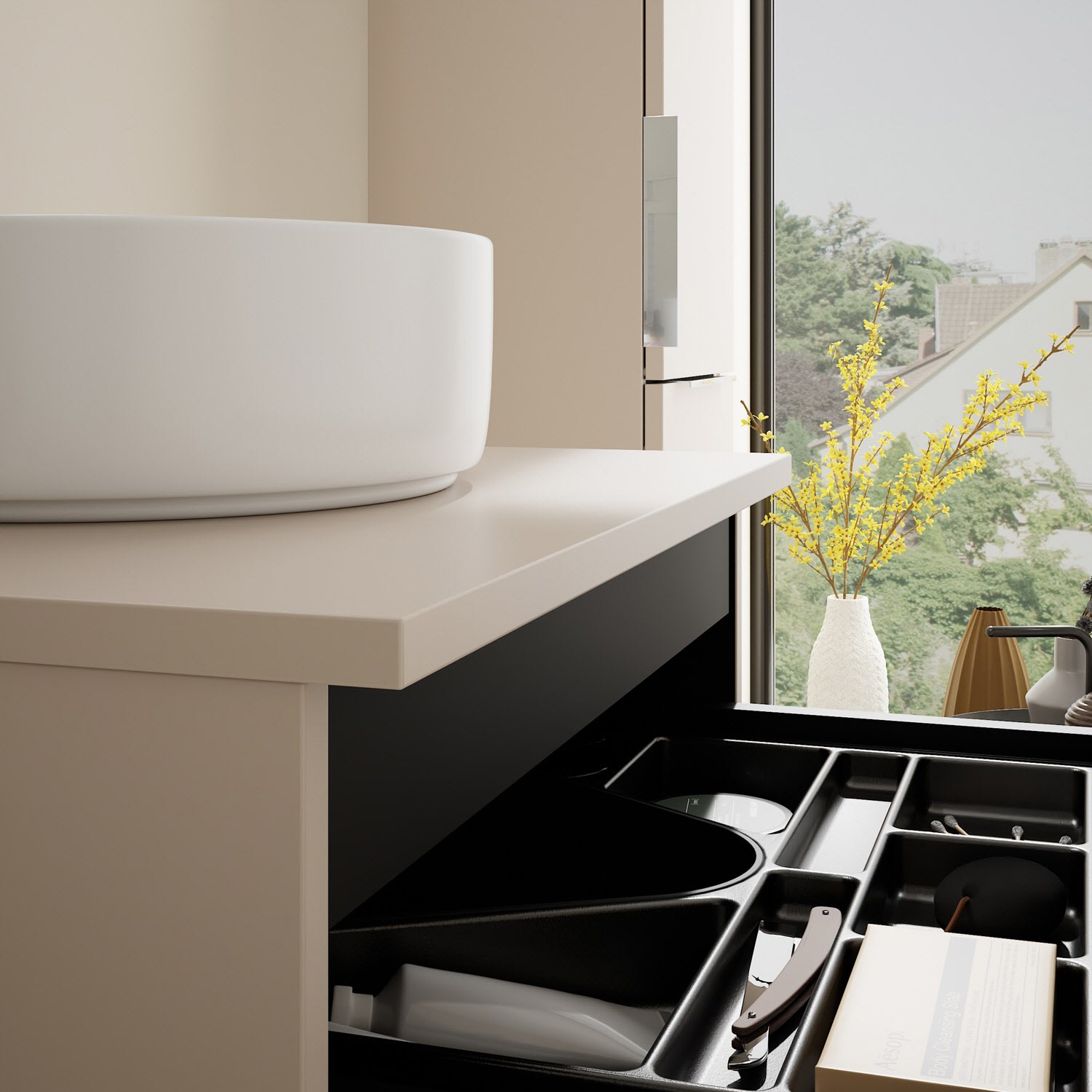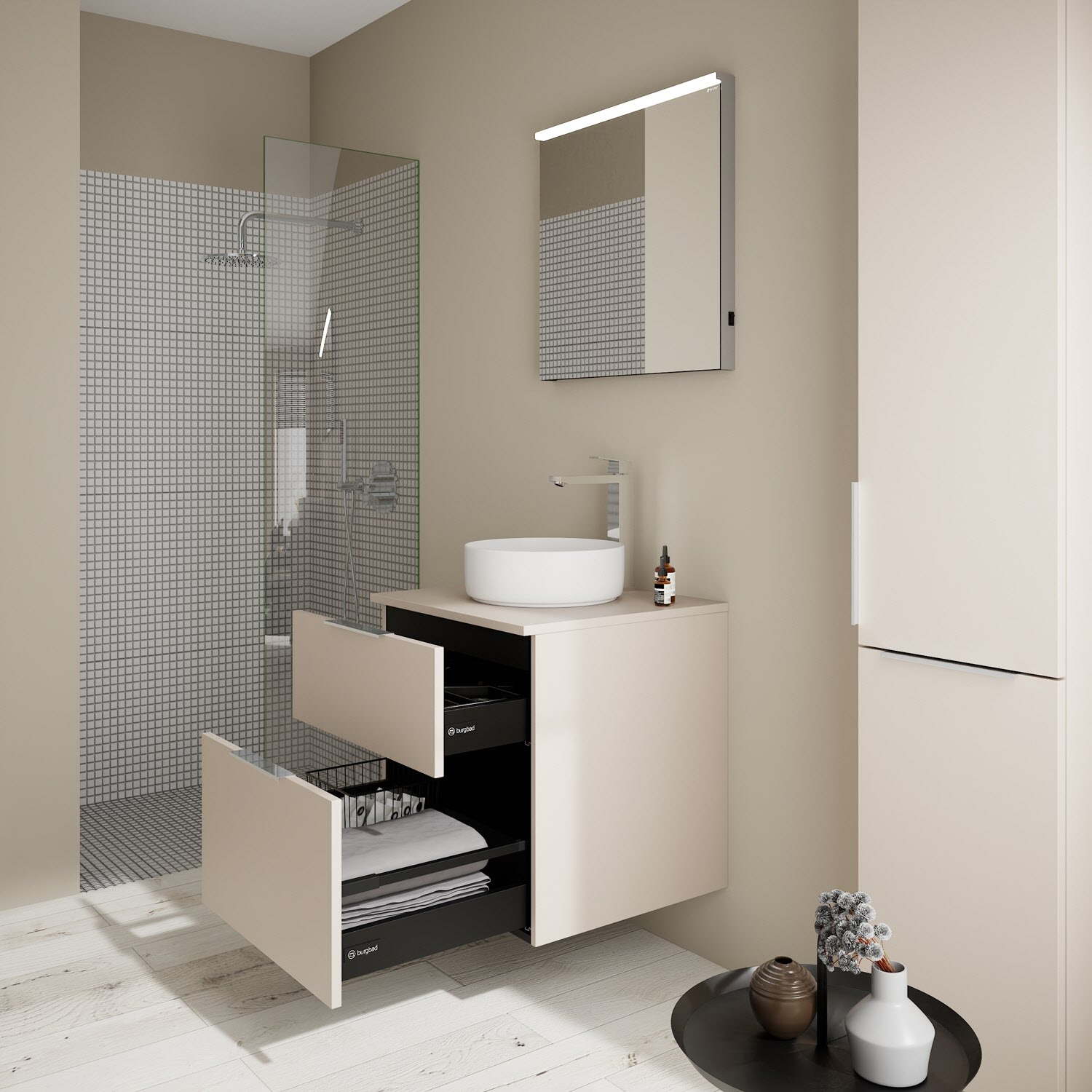 burgbad Eqio Waschtischkombination mit Keramik-Aufsatzwaschtisch 60 cm, Griff G0146